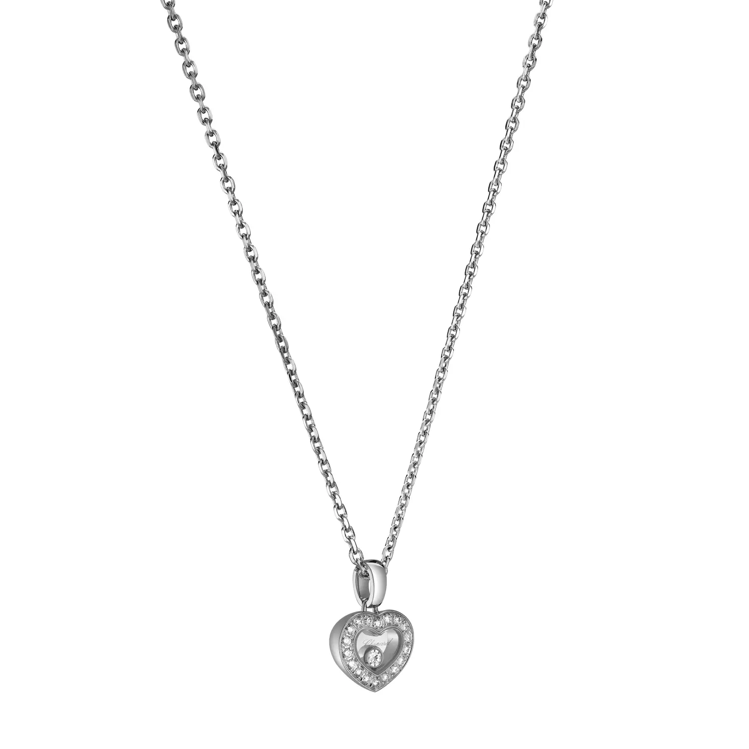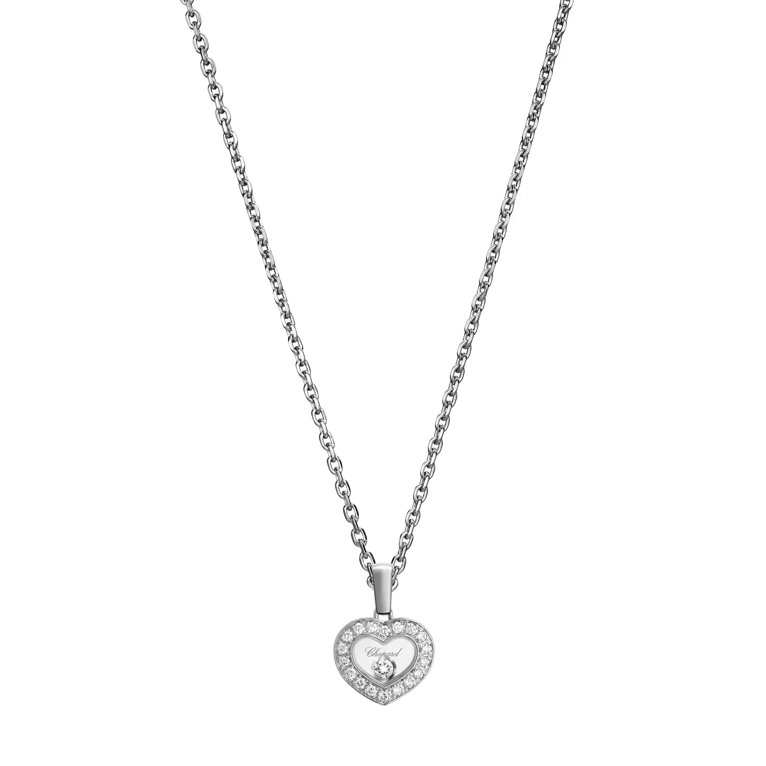 The Chopard Happy Diamonds Pendant 79A054-1201 is an outstanding fusion of an iconic symbol of sentiment and pure minimalist design. This elegant piece is crafted from 18 kt white gold (750/1000) with a refined polished finish, evoking timeless delicacy.
