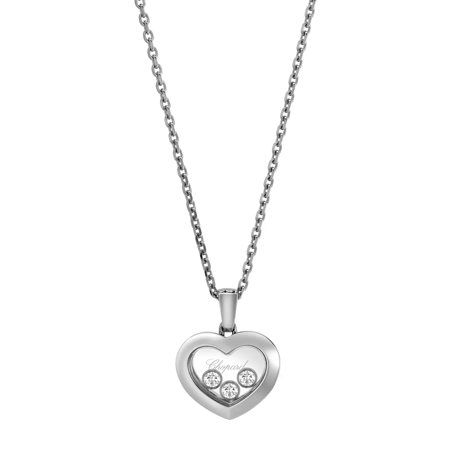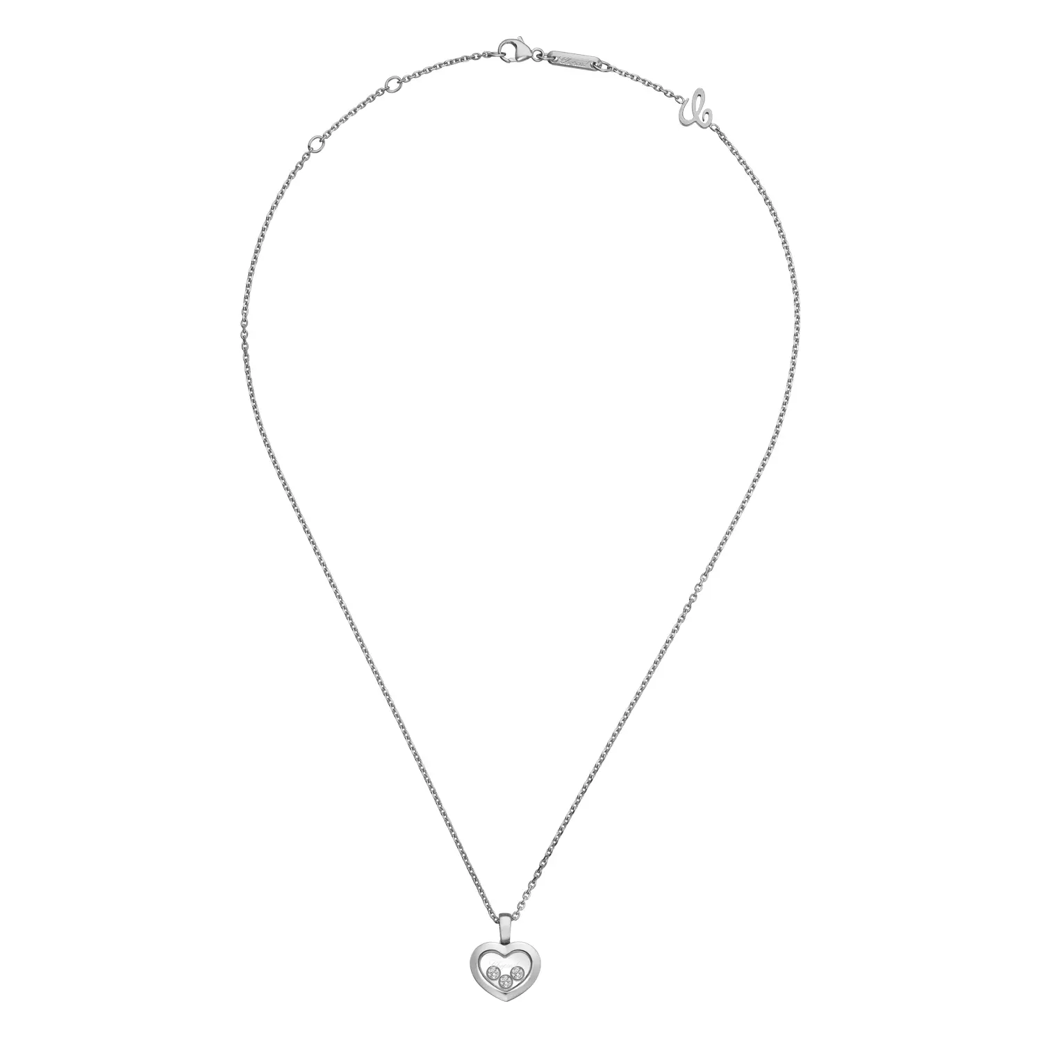 This elegant pendant from the Happy Diamonds Icons collection captures the essence of joy, freedom, and feminine grace. Crafted in 18 k white gold, it features freely moving diamonds totaling approximately 0.15 ct, encased between two sapphire crystals to create a mesmerizing dance of light and motion. Each element reflects Chopard’s mastery of refined craftsmanship and timeless elegance.
