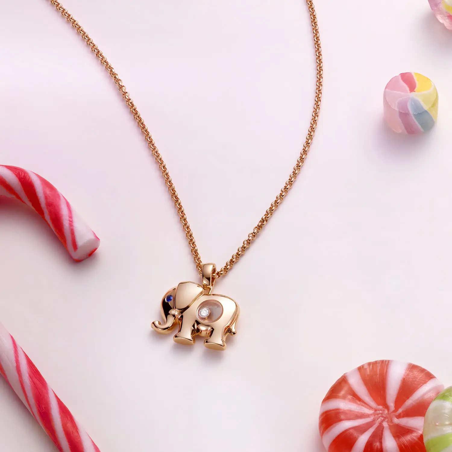Chopard Happy Diamonds Elephant Pendant 79A189-5001 offers a whimsical touch of artistry combined with luxurious craftsmanship. Styled as a graceful elephant motif, it’s meticulously crafted from 18kt rose gold (750/1000) with a polished finish that exudes subtle elegance.