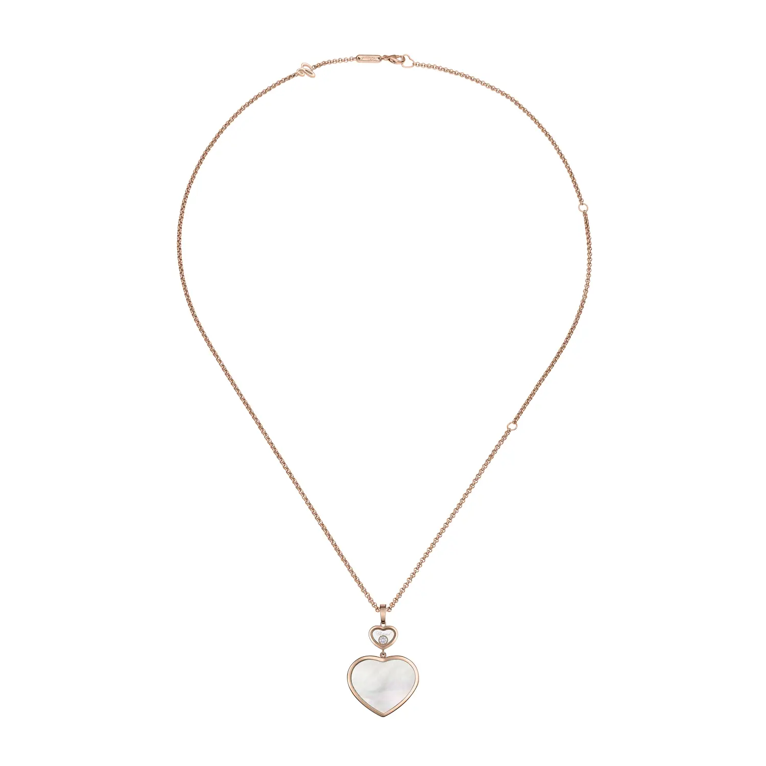 Chopard Happy Hearts 79A075-5301 is a delicate yet striking luxury pendant that perfectly blends the playful spirit of the iconic collection with timeless elegance. Crafted from 18-karat rose gold (750/1000) with a polished finish, it radiates a warm glow and a premium character.