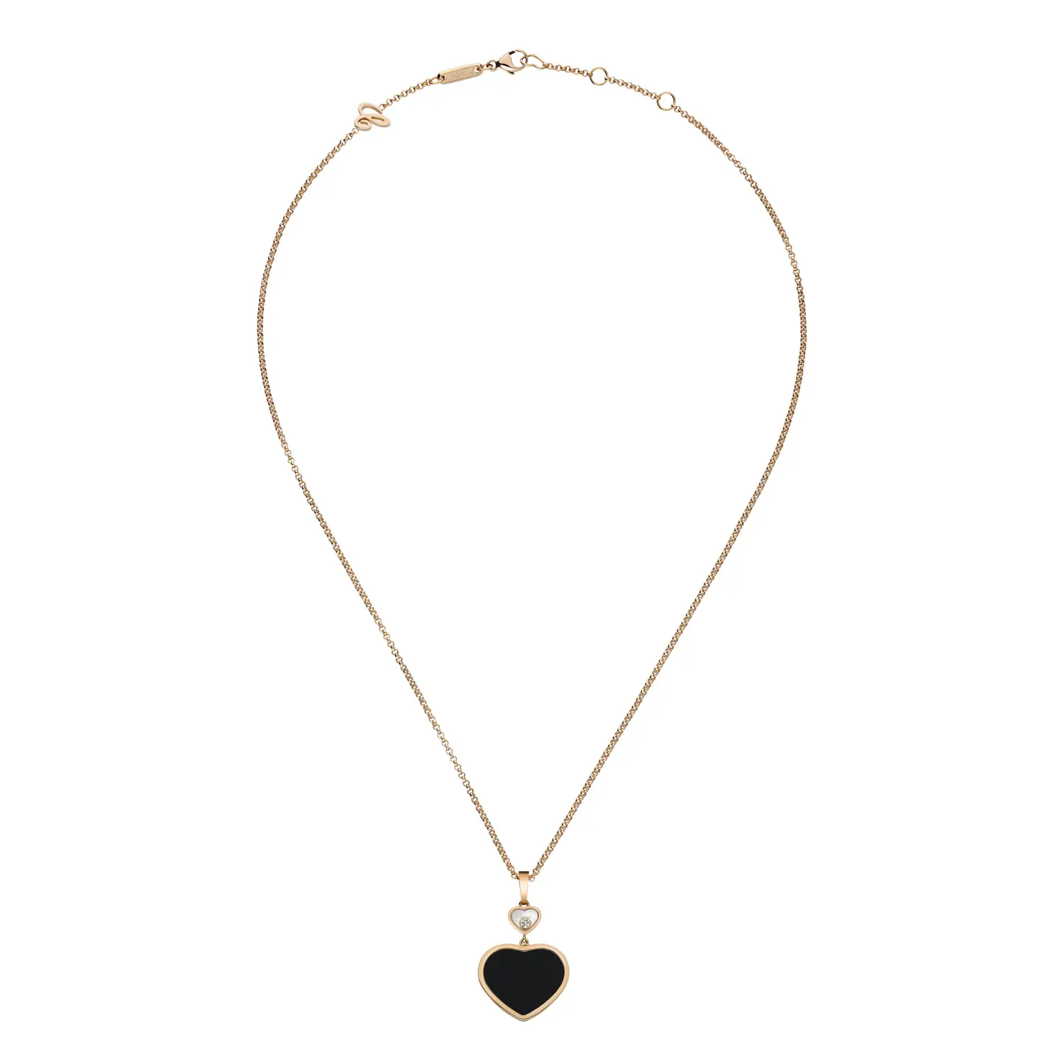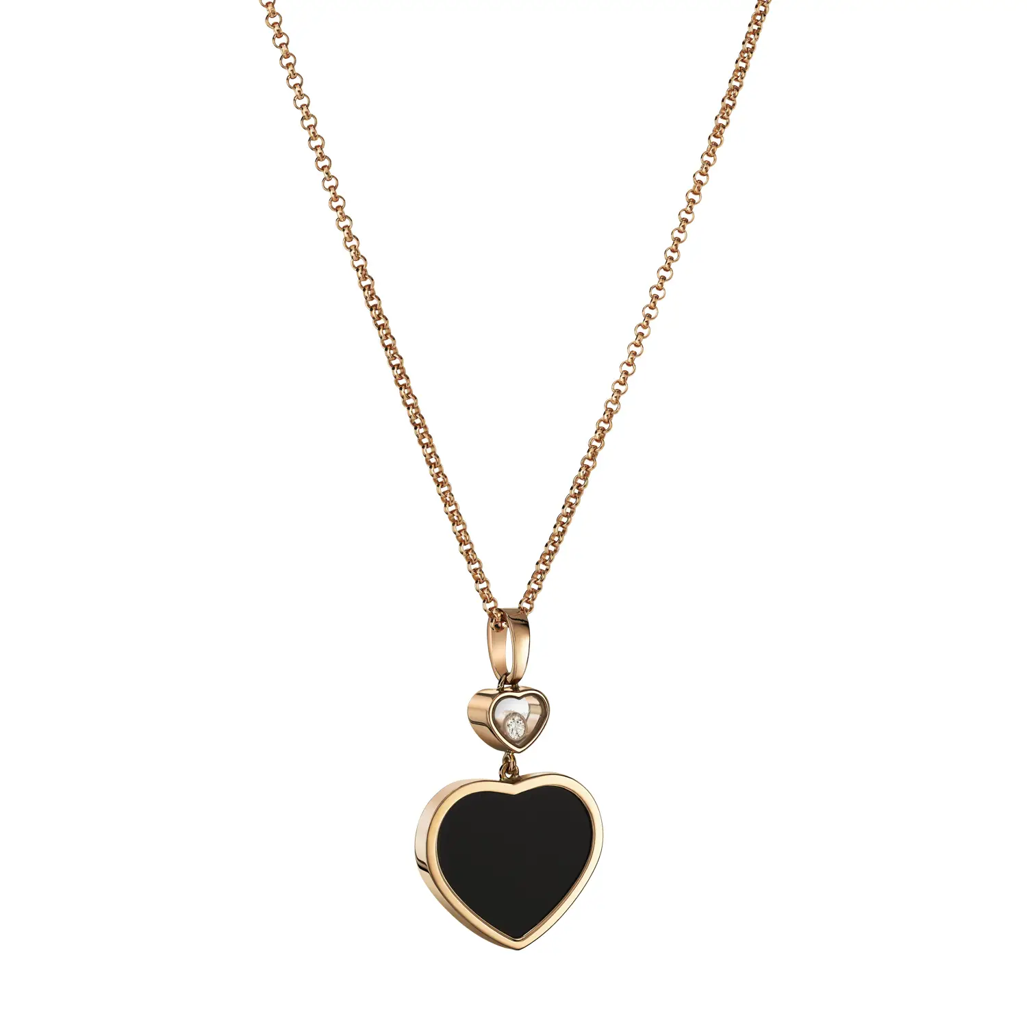 The Chopard Happy Hearts 797482-5201 pendant embodies elegance, emotion, and generosity — the essence of the iconic Happy Hearts collection. Crafted from ethical 18-carat rose gold, it features a black onyx heart, symbolizing love and strength. The contrast between the deep black stone and the warm gold creates a look of modern sophistication and timeless charm.