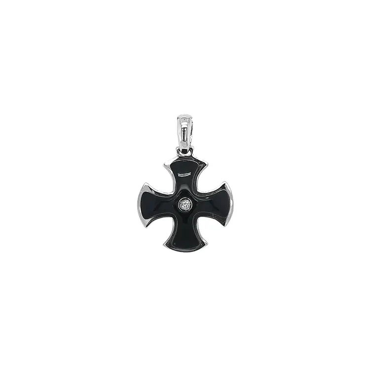 Gold Pendant Cross with Onyx
