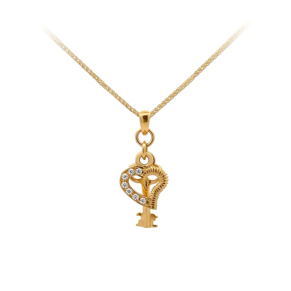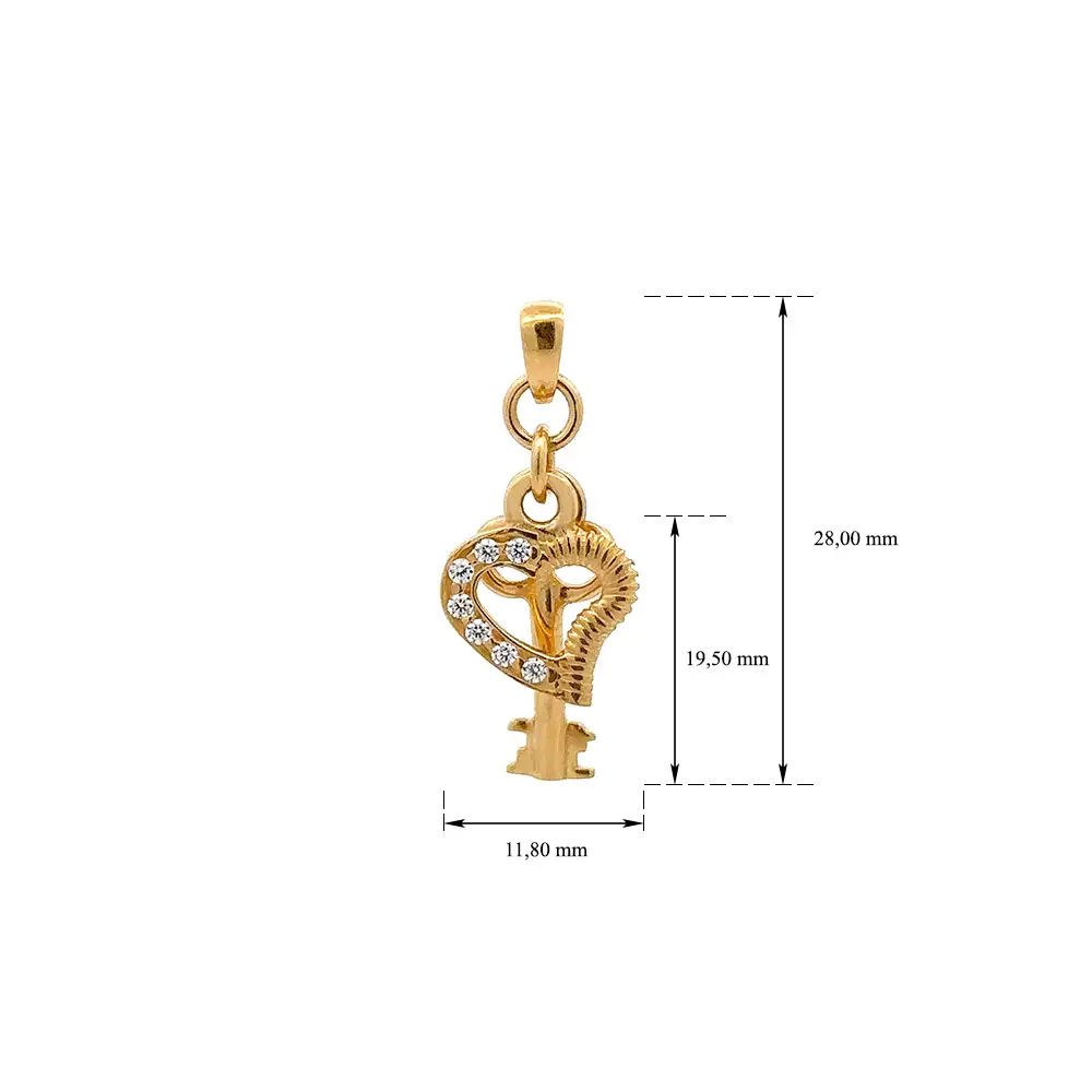 Gold Pendant Heart and Key with Zircons
