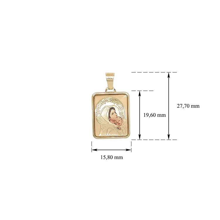 Gold Pendant Madonna Mary and Baby Jesus