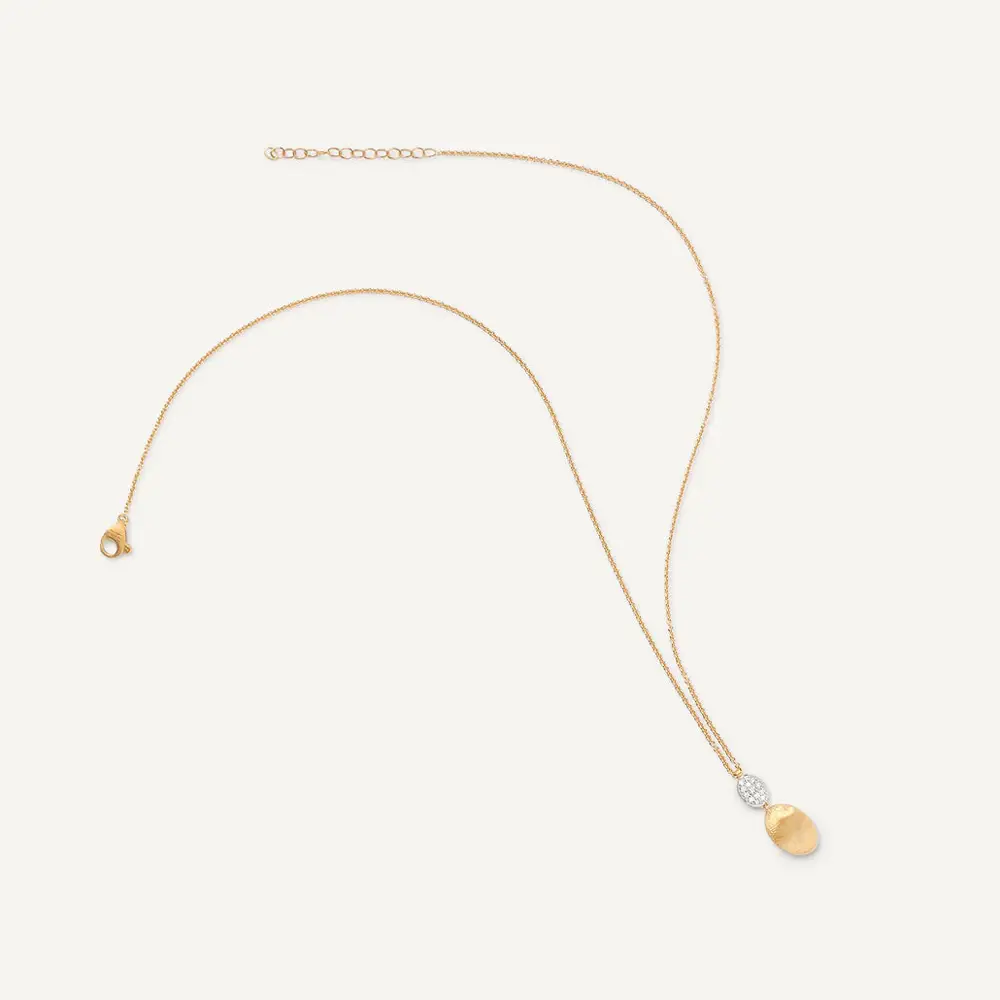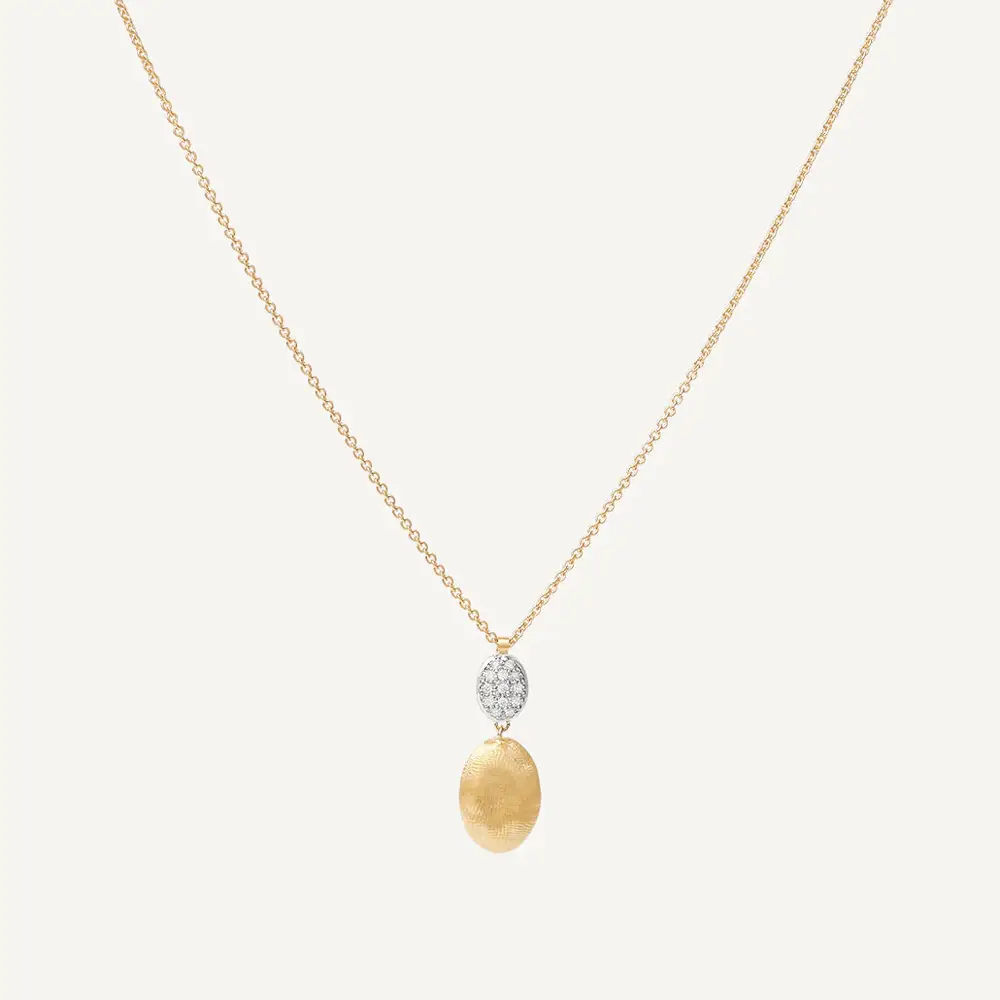 This refined pendant from Marco Bicego’s Siviglia collection is crafted from 18kt yellow gold (750/1000) and finished with the signature matte texture, giving it a soft, velvety radiance. Its organic, hand-shaped silhouette reflects the artisanal craftsmanship characteristic of the collection.