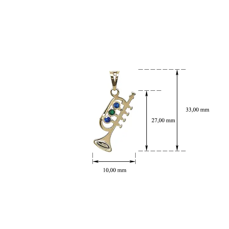 Gold Pendant Trumpet with Coloured Stones