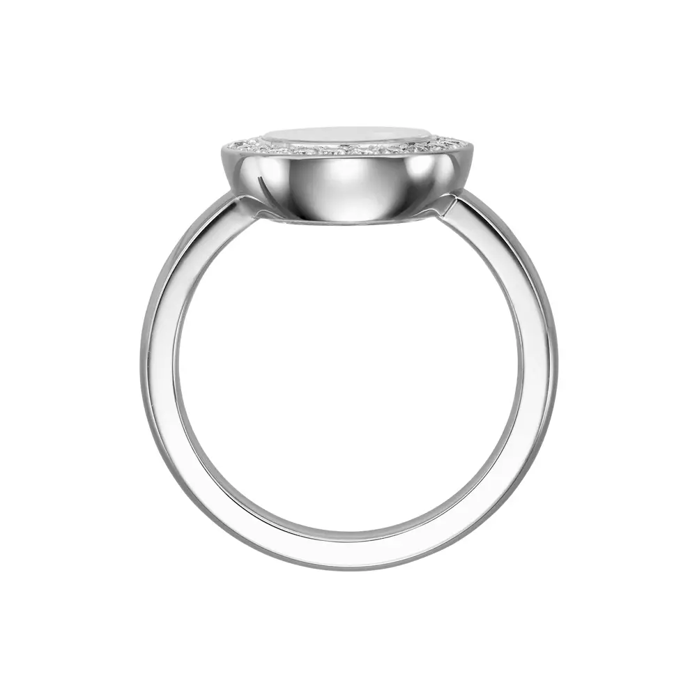 The Chopard Happy Diamonds Icons Ring 82A018-1211 in 18 K white gold combines elegance and playfulness in perfect harmony. At its heart, the brand’s signature “dancing diamonds” move freely between two sapphire crystals, symbolising joy, freedom, and light that shimmers beautifully with every gesture.