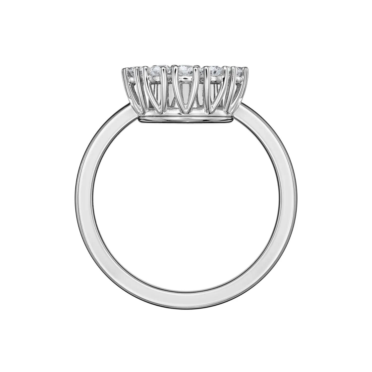 This striking ring is adorned with 13 natural round-cut diamonds with a total weight of 0.60 ct, each of IF clarity and F–G color. Their brilliant sparkle perfectly captures the light and highlights the meticulous craftsmanship. The bold style celebrates the joy of Happy Diamonds — a stone freely set between two sapphire crystals “dances” with every movement, creating a unique visual effect.