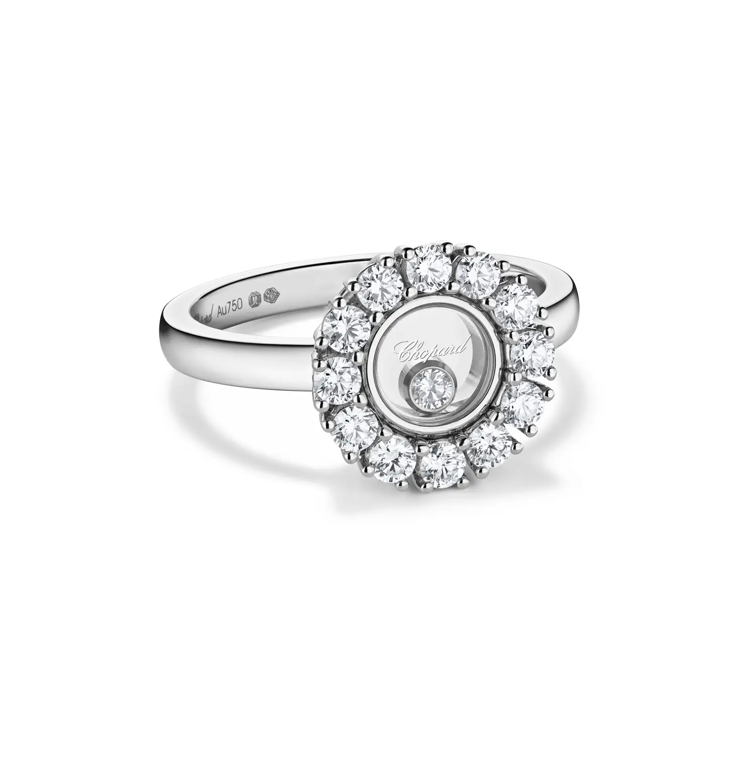 The Chopard Happy Diamonds Ring 82A609-1111 is an iconic jewel where playfulness meets refined Swiss elegance. Crafted from 18 kt white gold (750/1000) with a polished finish, it combines dynamic design with lasting sophistication.