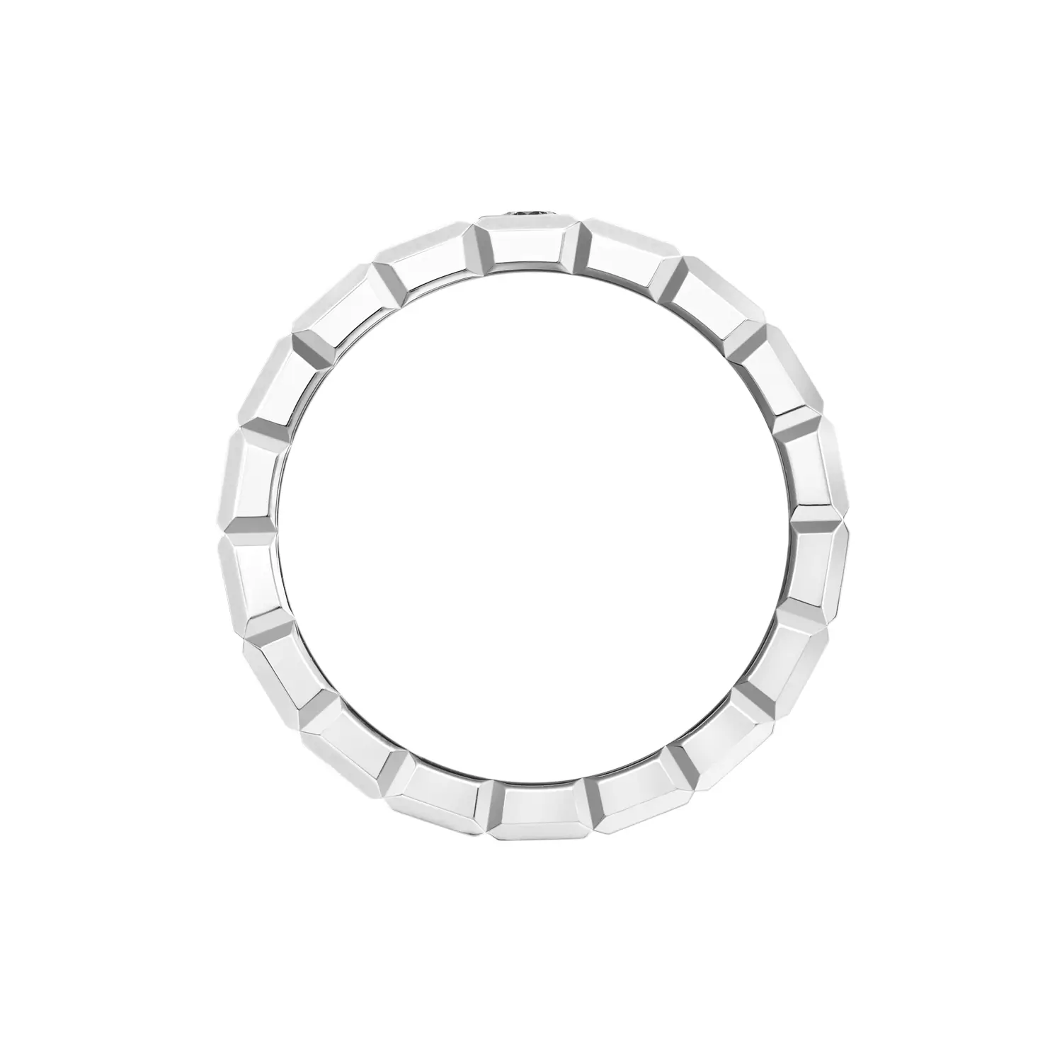 The Chopard Ice Cube ring in 18k ethical white gold is a symbol of modern elegance and minimalist luxury. Its iconic cube-inspired structure reflects light from every angle, creating the effect of perfectly sculpted ice blocks. A subtle diamond of approximately 0.03 ct adds a delicate sparkle without disturbing the ring’s pure geometric aesthetic.