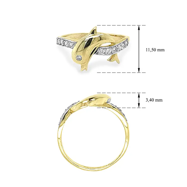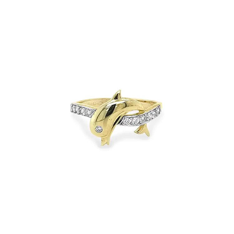 Gold Ring Dolphin with Zircons
