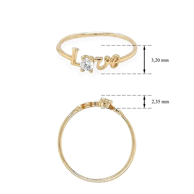 Gold Ring Love with Zircon