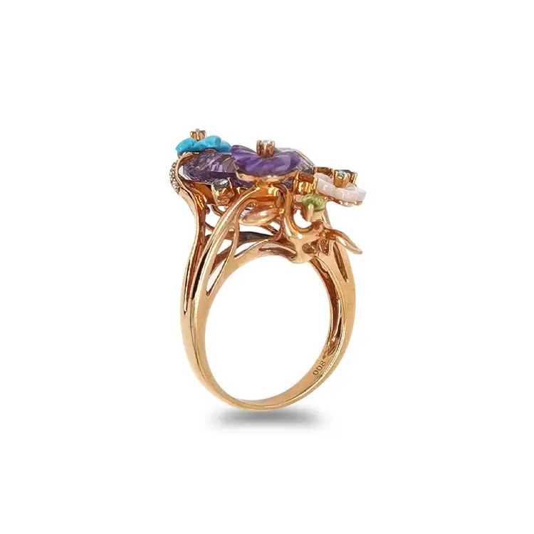 Gold Ring Semi precious stones and Diamonds