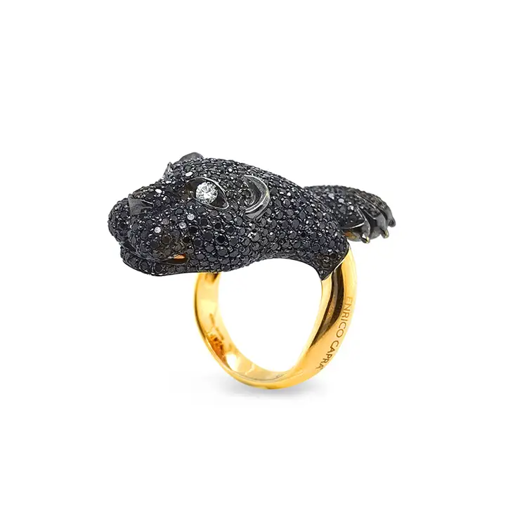 Gold Ring with Black and White Diamonds