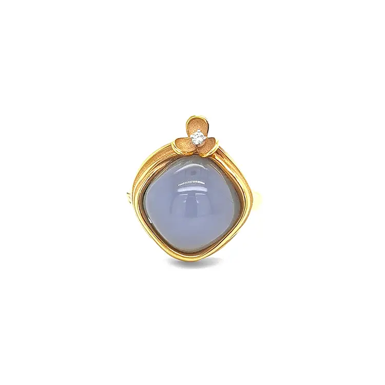Gold Ring with Chalcedony and Diamond