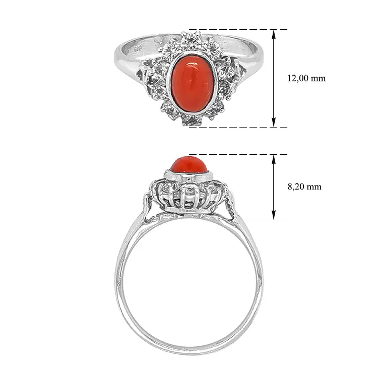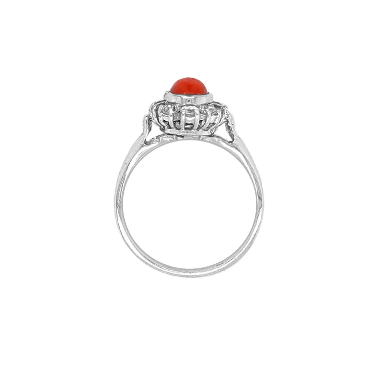 Gold Ring with Coral and Zircones