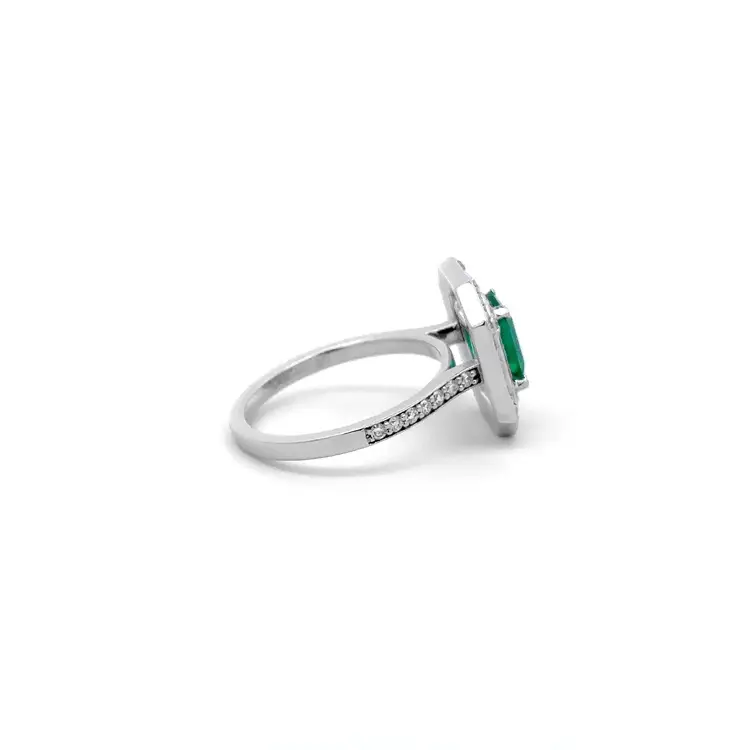 The Beny Jewellery emerald and diamond ring celebrates feminine grace and the power of nature. Handcrafted in 18 kt (750/1000) polished white gold, it embodies refined balance and timeless elegance. At its heart glows a natural 1.19 ct emerald in a classic Emerald cut, its rich green hue symbolising renewal, serenity, and inner strength.