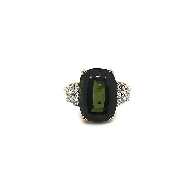 Gold Ring with Green Tourmaline and Diamonds