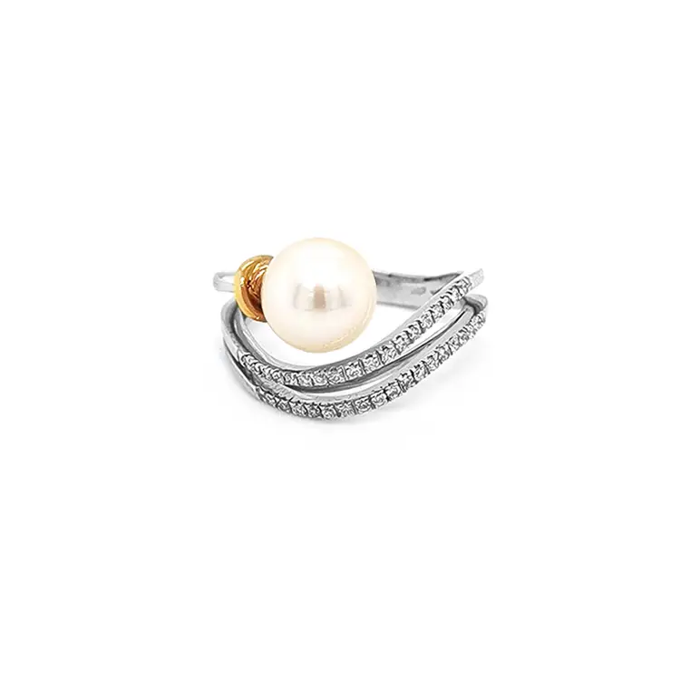Gold Ring with Natural Pearl and Diamonds