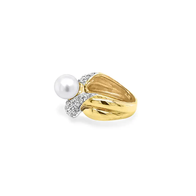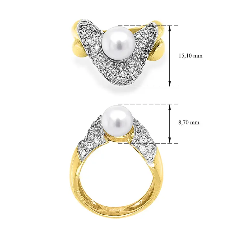 Gold Ring with Pearl and Zircones