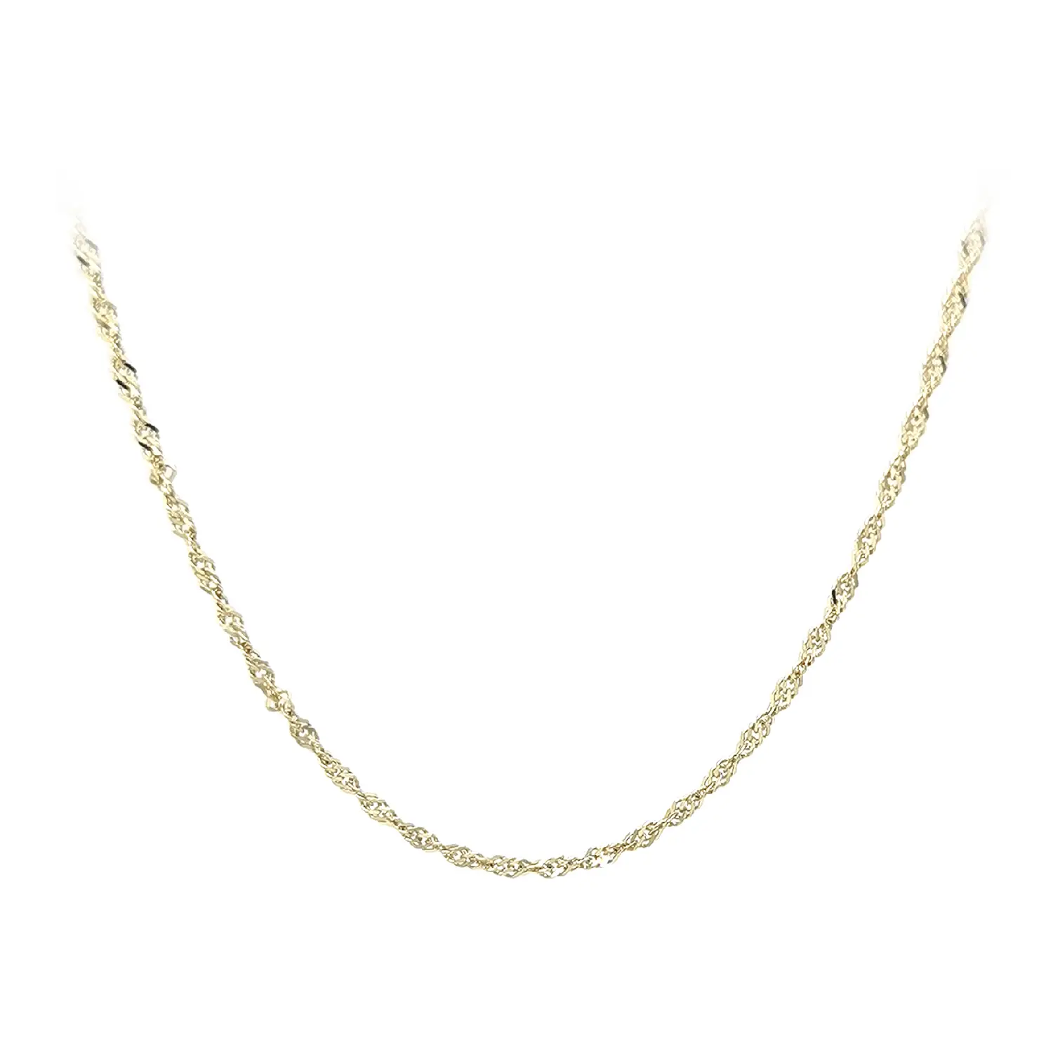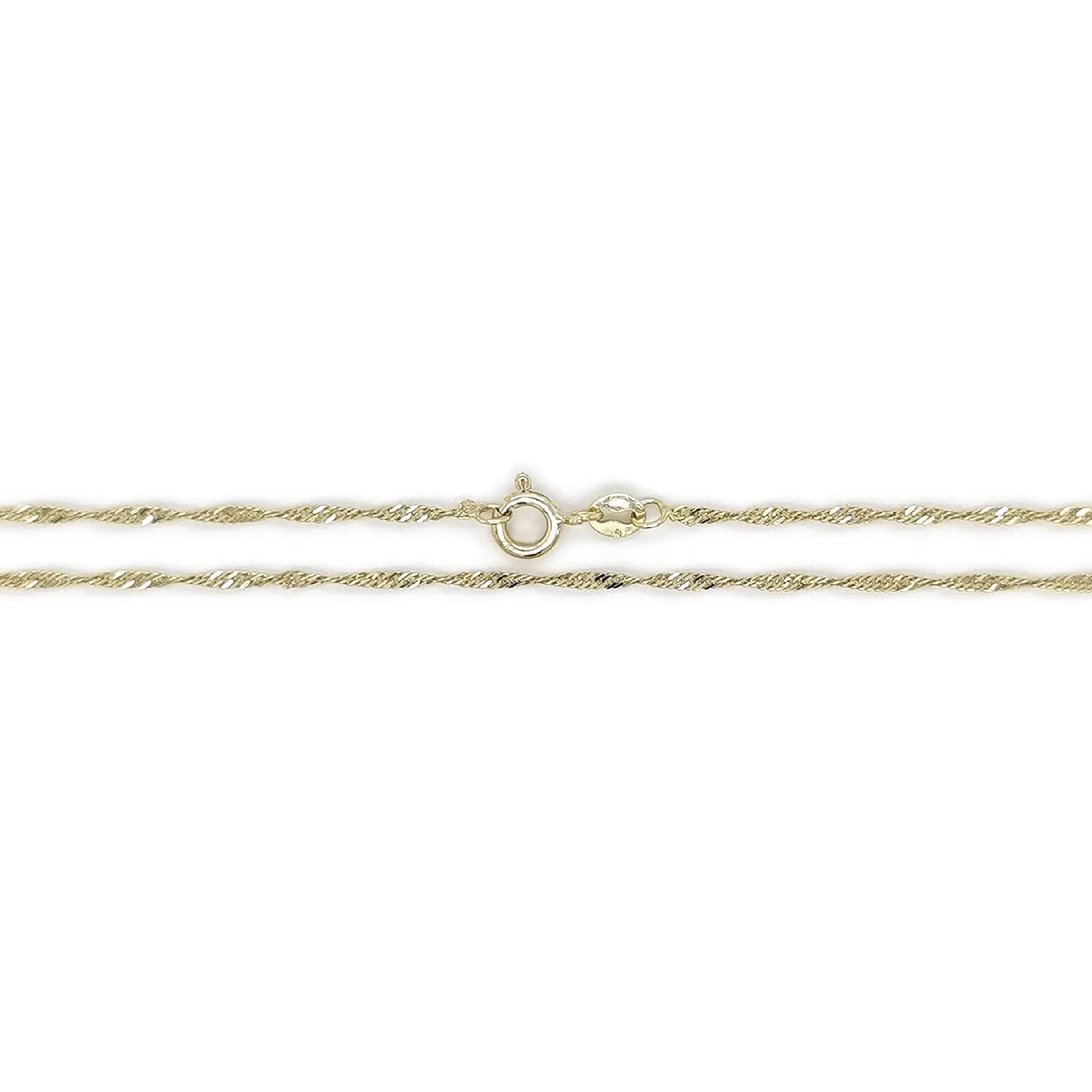 The gold Singapore chain stands out with its finely twisted structure, which creates an elegant shine and gives the jewelry a more distinctive yet still refined character. Thanks to the slightly greater width of 1.70 mm, it appears more substantial while retaining its signature lightness and elegance.