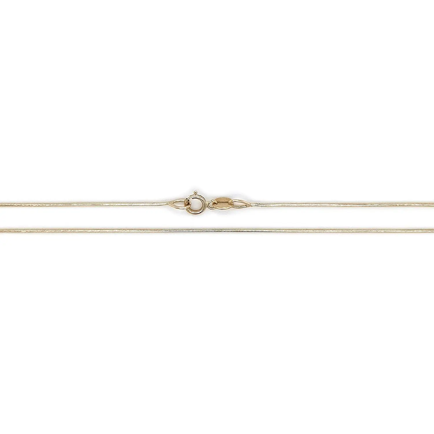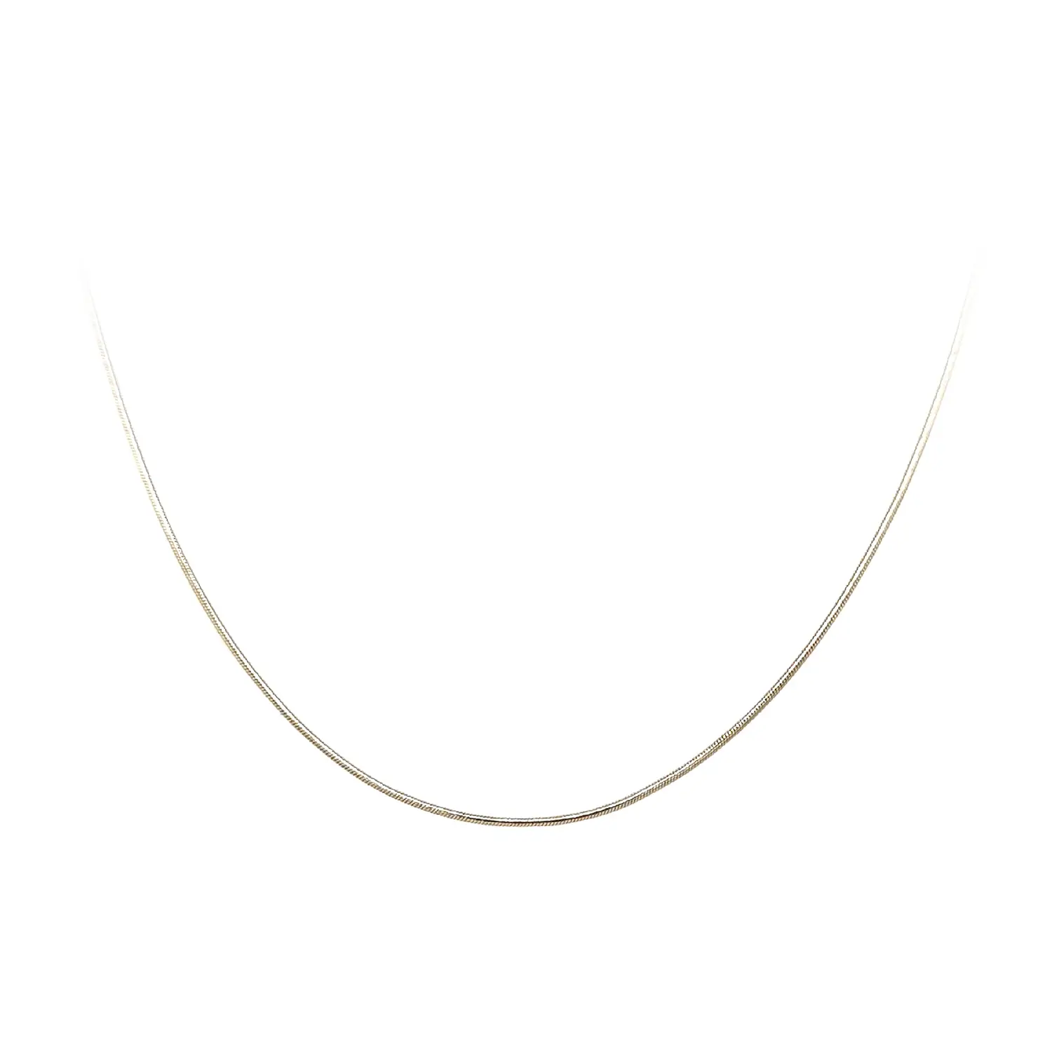 This gold snake chain impresses with its smooth, compact design, creating an elegant and fluid look on the neck. Thanks to its characteristic snake pattern, it has a subtle shine and a refined appearance, whether worn on its own or as a base for a pendant. The chain adapts beautifully to the shape of the neck and is comfortable for everyday wear.