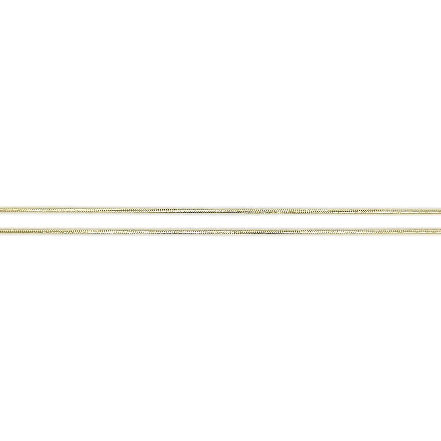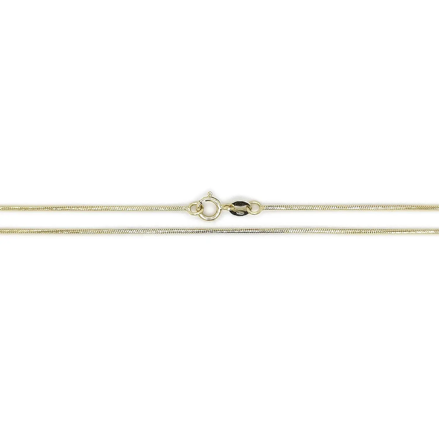 The gold snake chain features a smooth, fluid structure that creates an elegant and delicate appearance. Its tightly linked design provides a continuous shine and a refined look, making it ideal for wearing alone or with a pendant.
