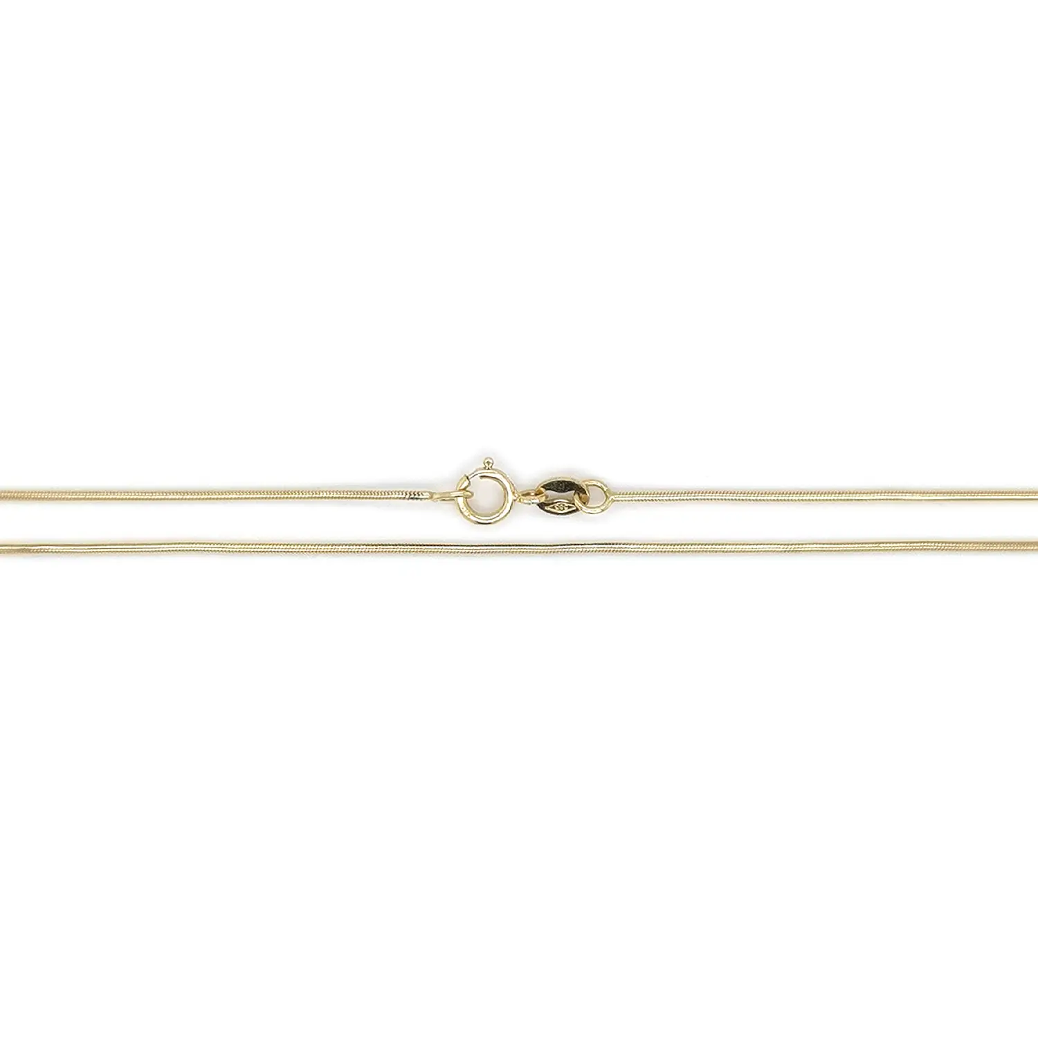 The necklace is crafted from yellow gold, has a length of 40 cm and a width of 0.70 mm, making it a lightweight and elegant piece suitable for everyday wear. It is finished with a secure spring-ring clasp, ensuring comfortable and reliable fastening. Thanks to its flexibility, it adapts beautifully to the shape of the neck and offers excellent wearing comfort.