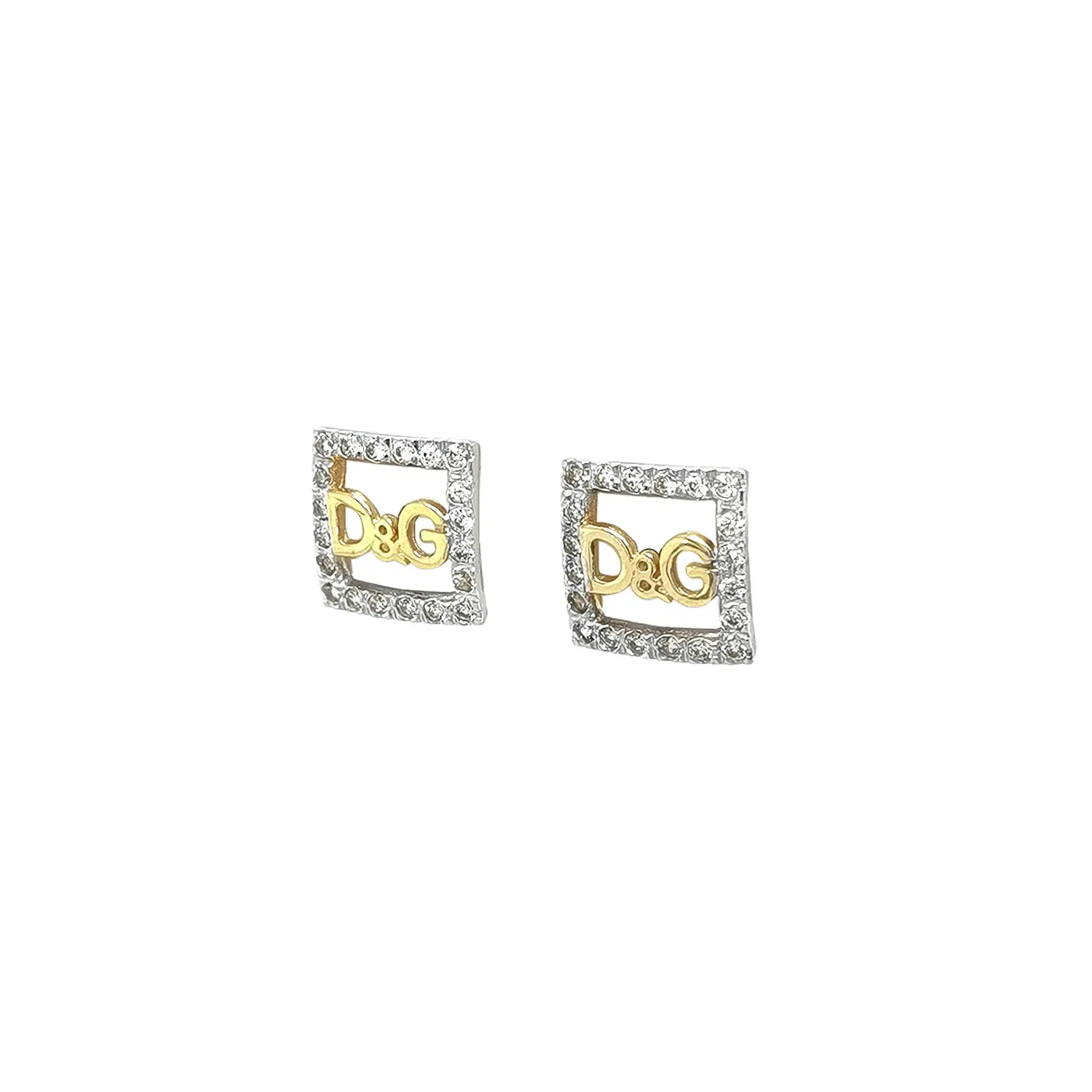 These luxurious square D&G earrings are a true statement piece, capturing attention with their sophistication and precise craftsmanship. The open square frame is adorned with clear zircons along its entire perimeter, sparkling beautifully with every movement. At the center sits the iconic D&G logo in polished yellow gold, adding a prestigious touch and instantly linking the design to the brand’s timeless style.