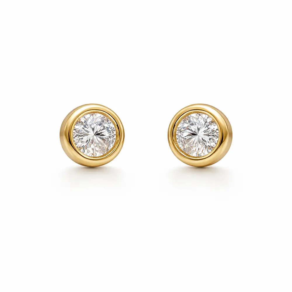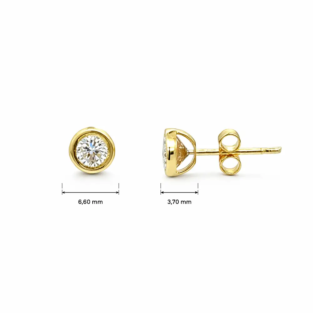 These gold stud earrings with a clear zircon represent a timeless piece of jewelry defined by purity and subtle elegance. The precisely set zircon beautifully reflects light, adding a delicate sparkle suitable for both everyday wear and special occasions.