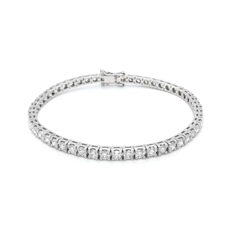 Crafted from 18kt white gold (750/1000), this diamond tennis bracelet is a masterpiece of precision and timeless style. Its polished finish captures the light with every movement, while the 3.45 mm width, 3.30 mm height, and 19 cm length ensure perfect proportions and graceful wear.