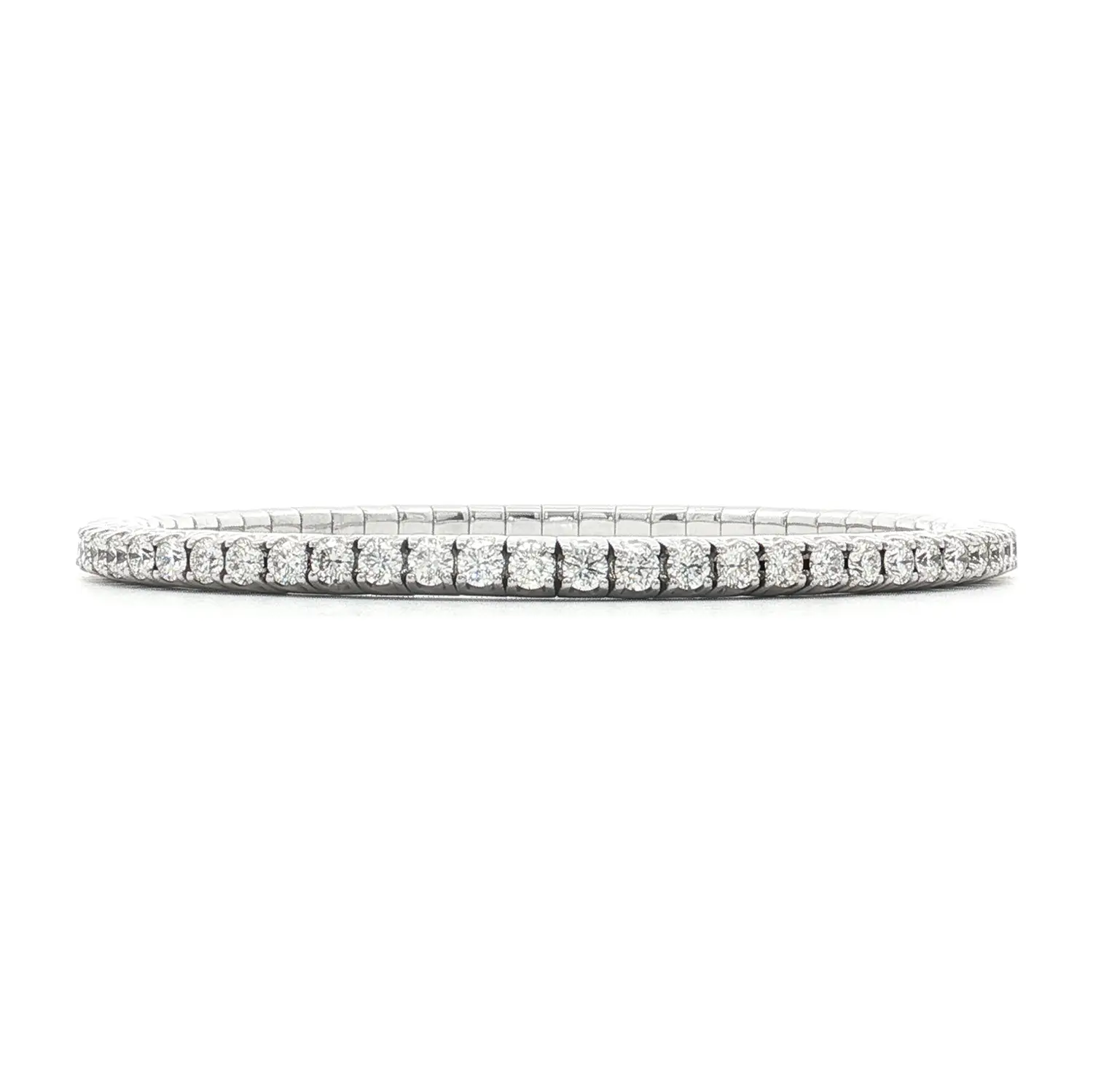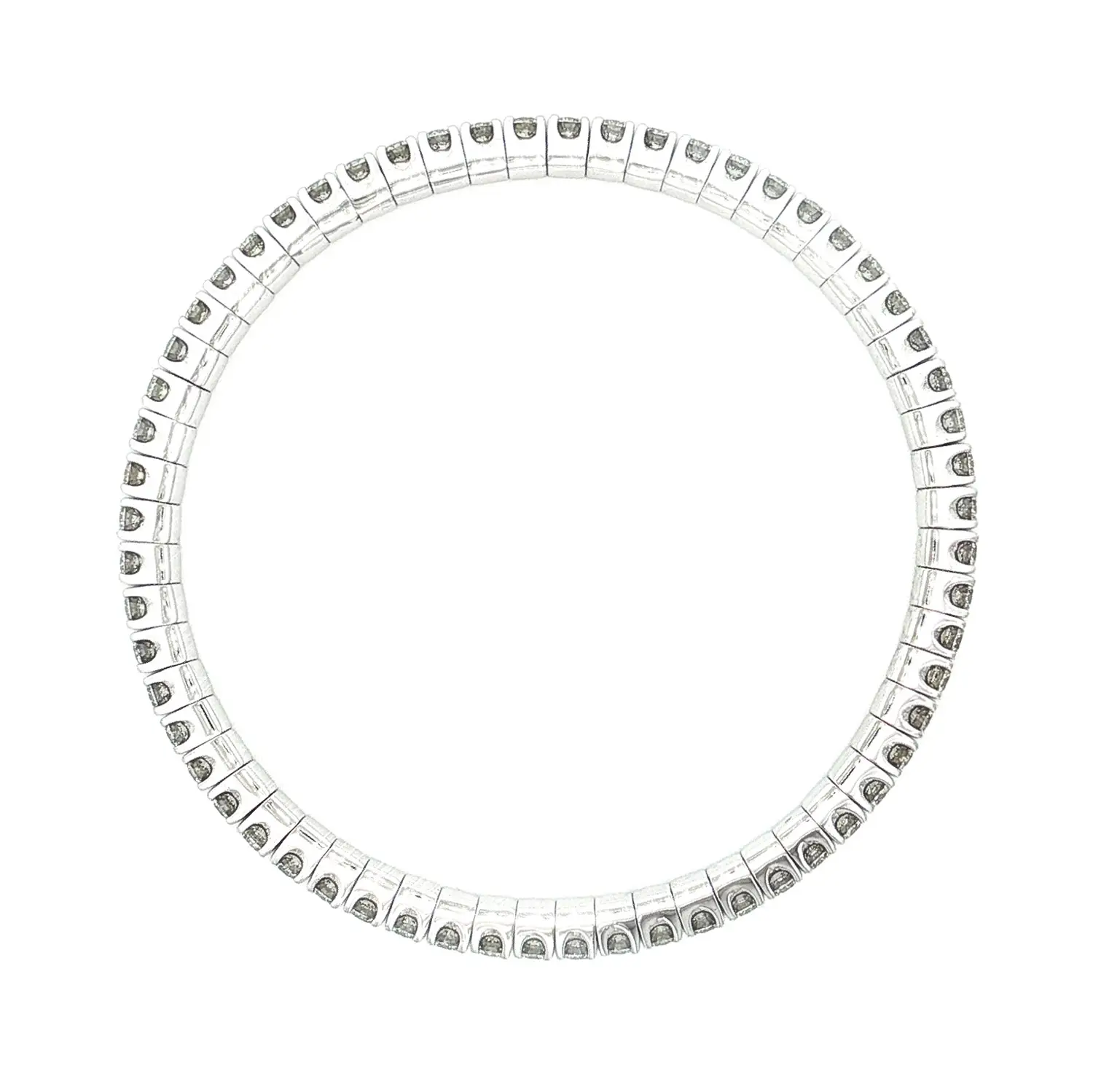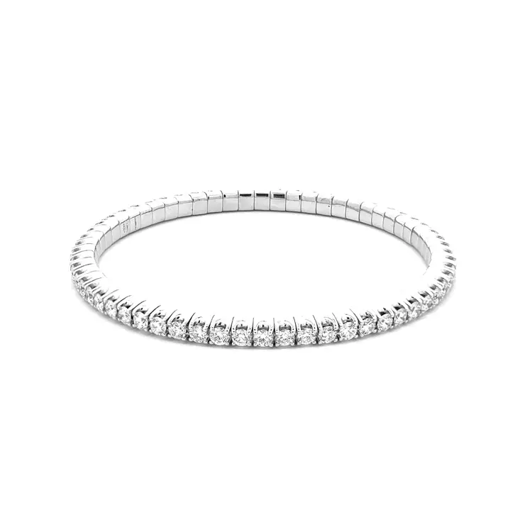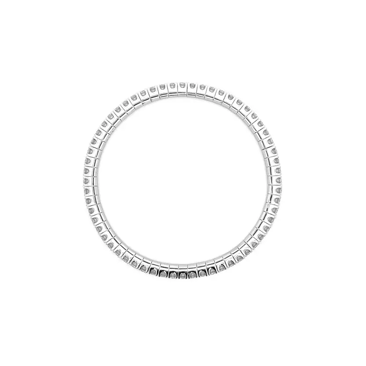 The Beny Jewellery diamond tennis bracelet is a pure expression of timeless elegance and precision craftsmanship. Composed of 60 natural round diamonds with a total weight of 4.88 ct, each stone is hand-set to form a continuous river of light. The bracelet’s refined structure in 18 kt (750/1000) white gold with a polished finish exudes understated yet unmistakable luxury.