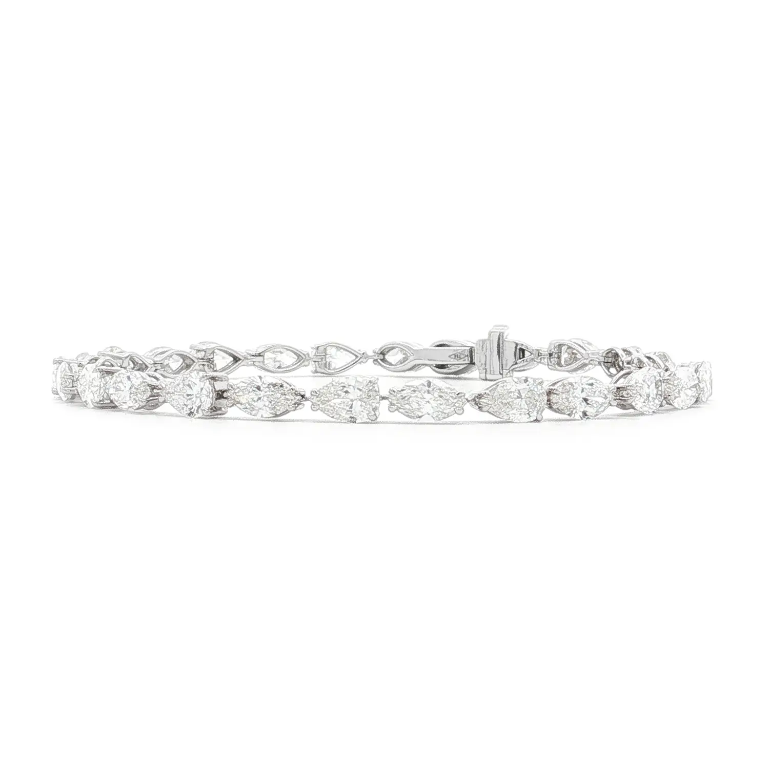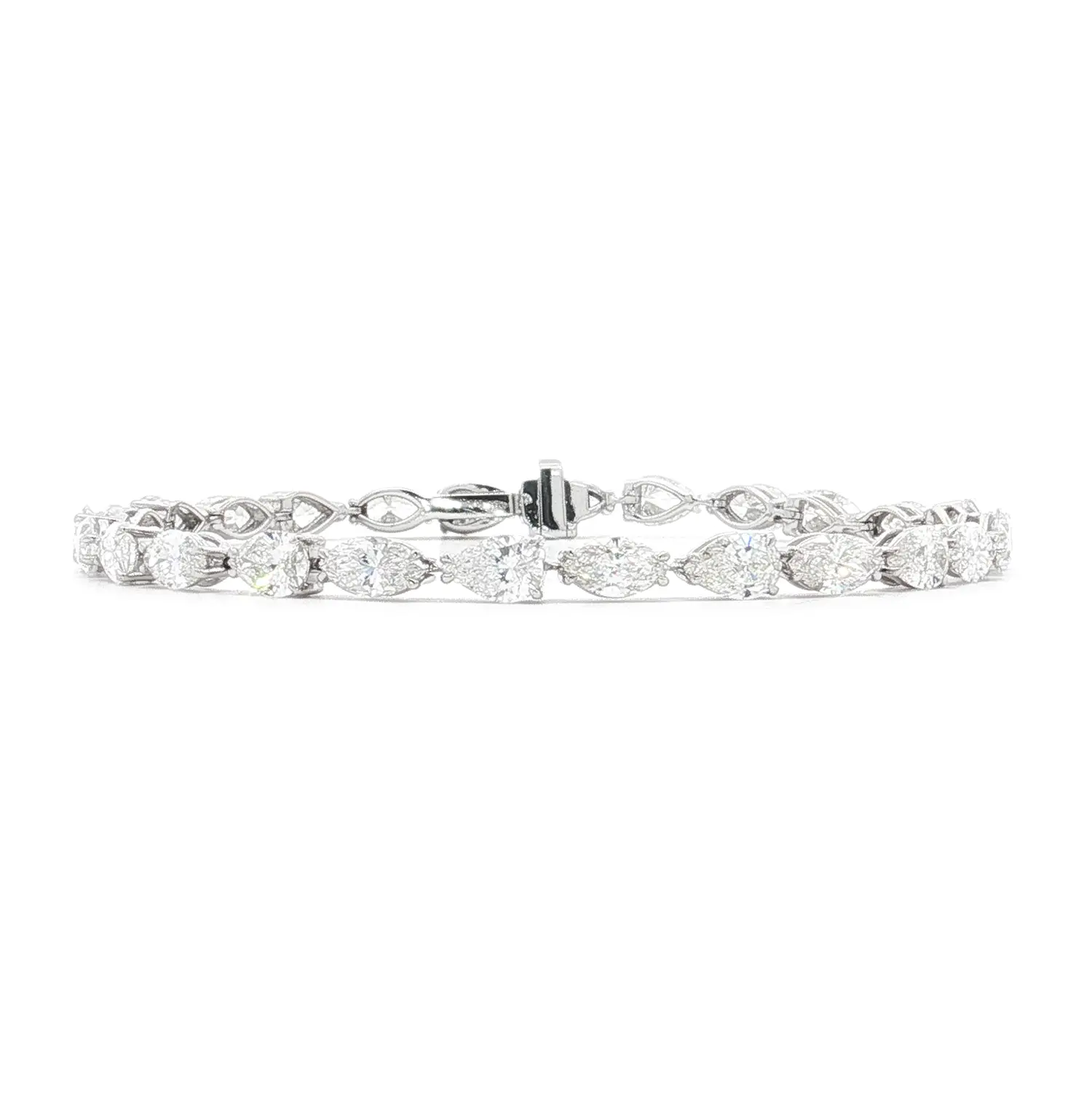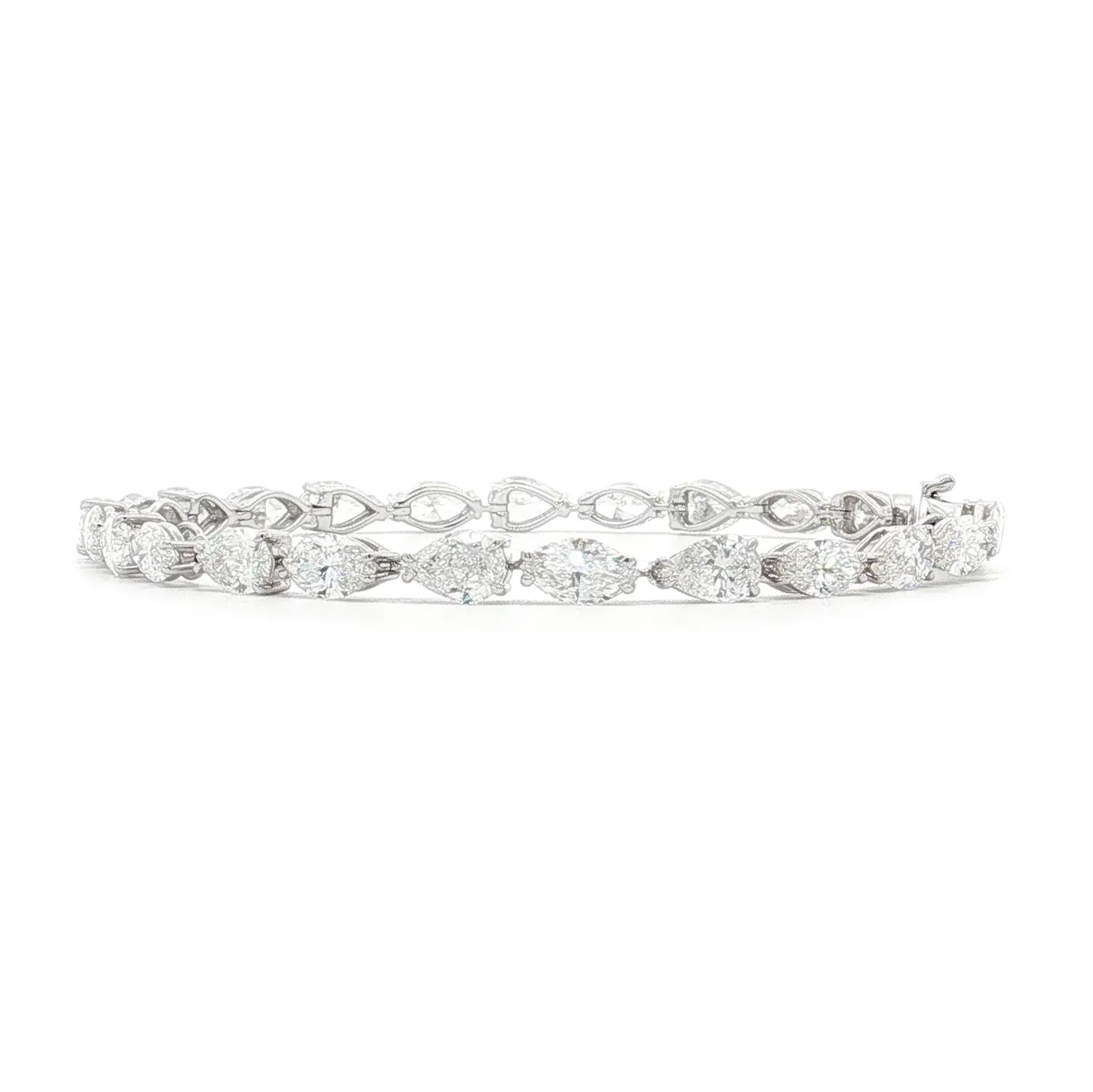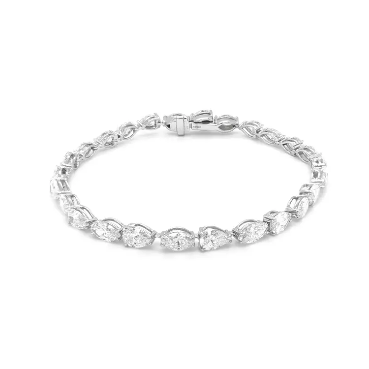 The bracelet features two types of natural white diamonds – 13 pear-cut stones totaling 4.42 ct and 13 marquise-cut stones weighing 4.27 ct. Each diamond, graded G colour and VS clarity, radiates exceptional brilliance and purity, creating a captivating play of light with every movement.