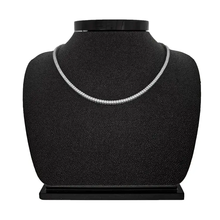 The piece is adorned with natural white round-cut diamonds totaling 6.00 carats, with colour grading G–H and clarity VS. Every diamond has been meticulously set by hand to form a flawless stream of brilliance circling the neckline. The effect is a shimmering cascade of light — luxurious yet balanced.