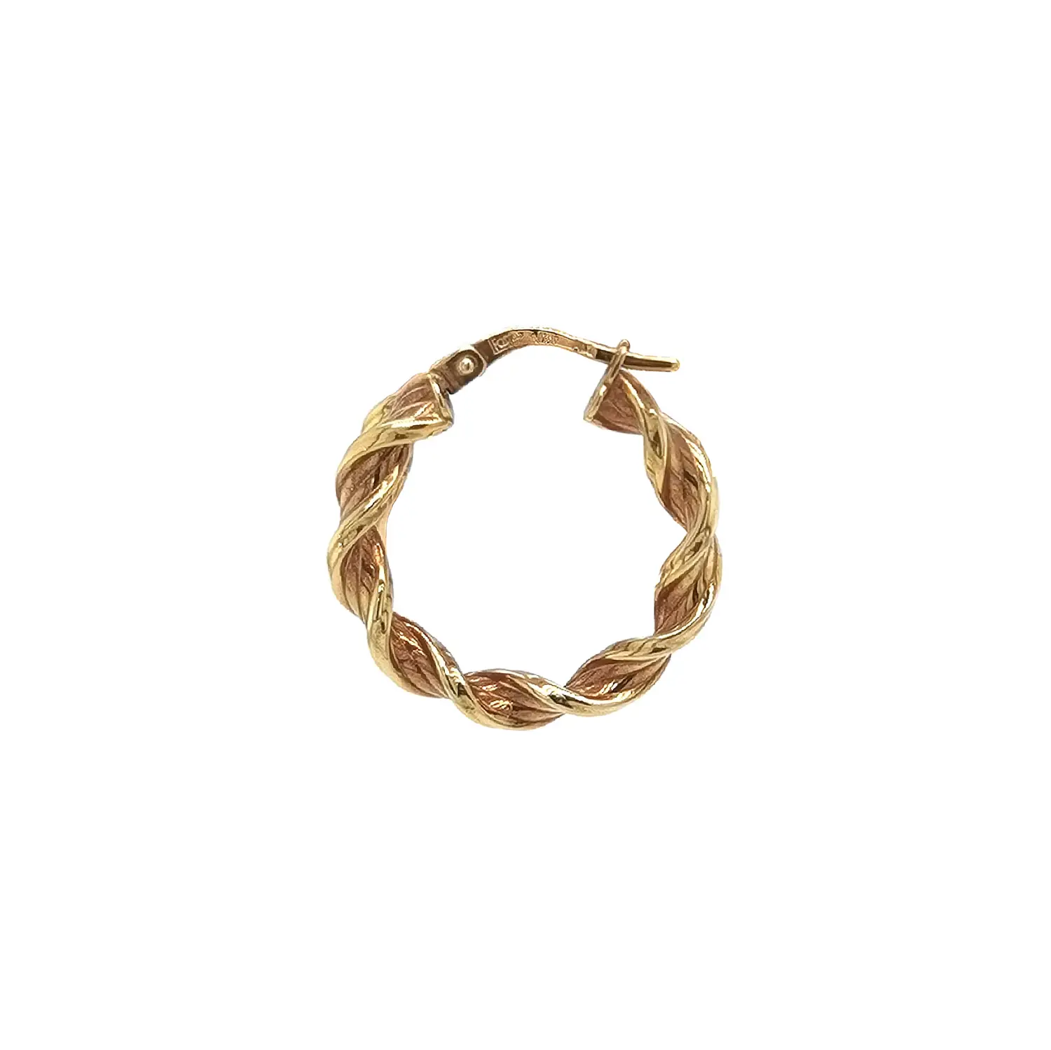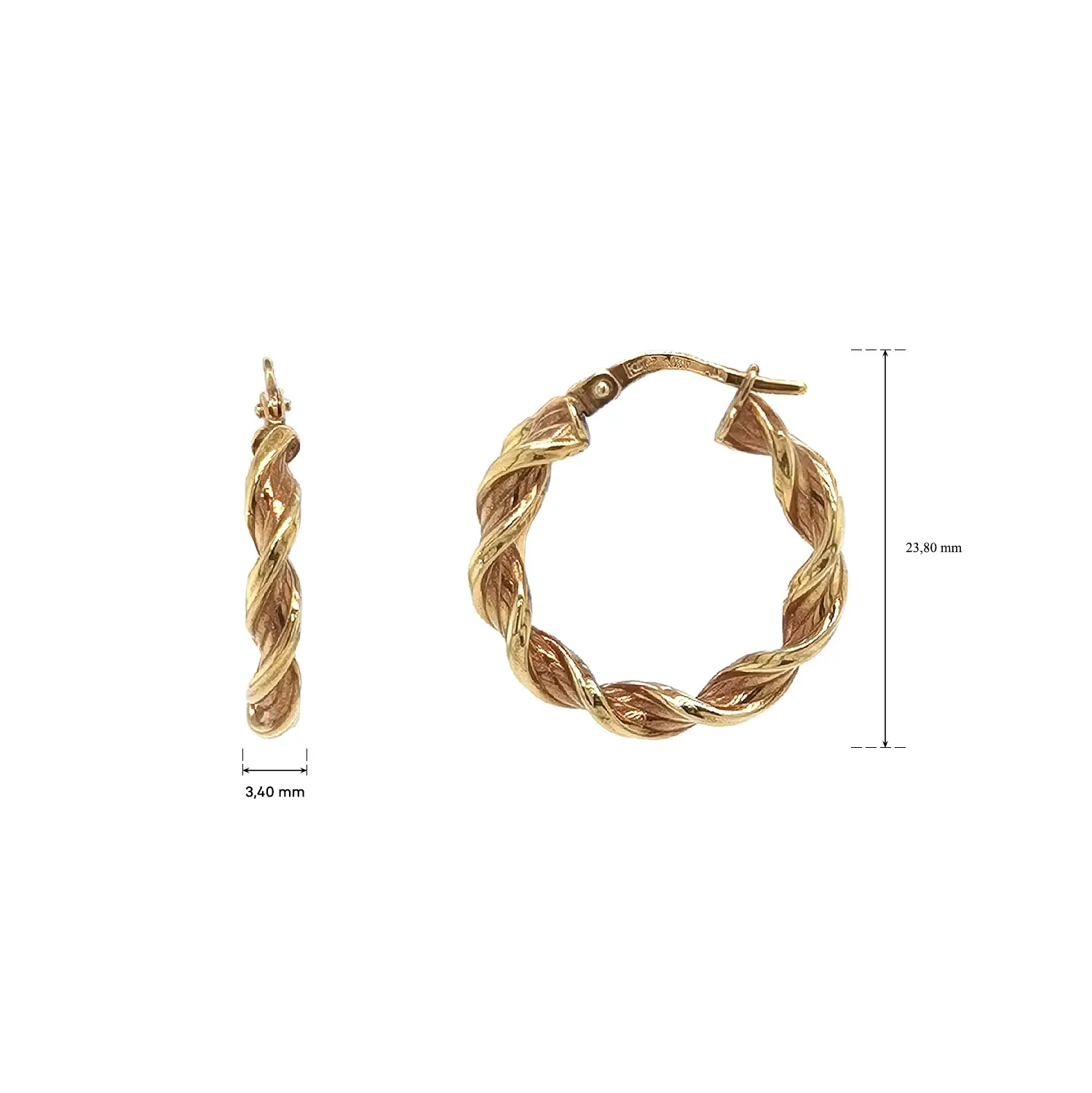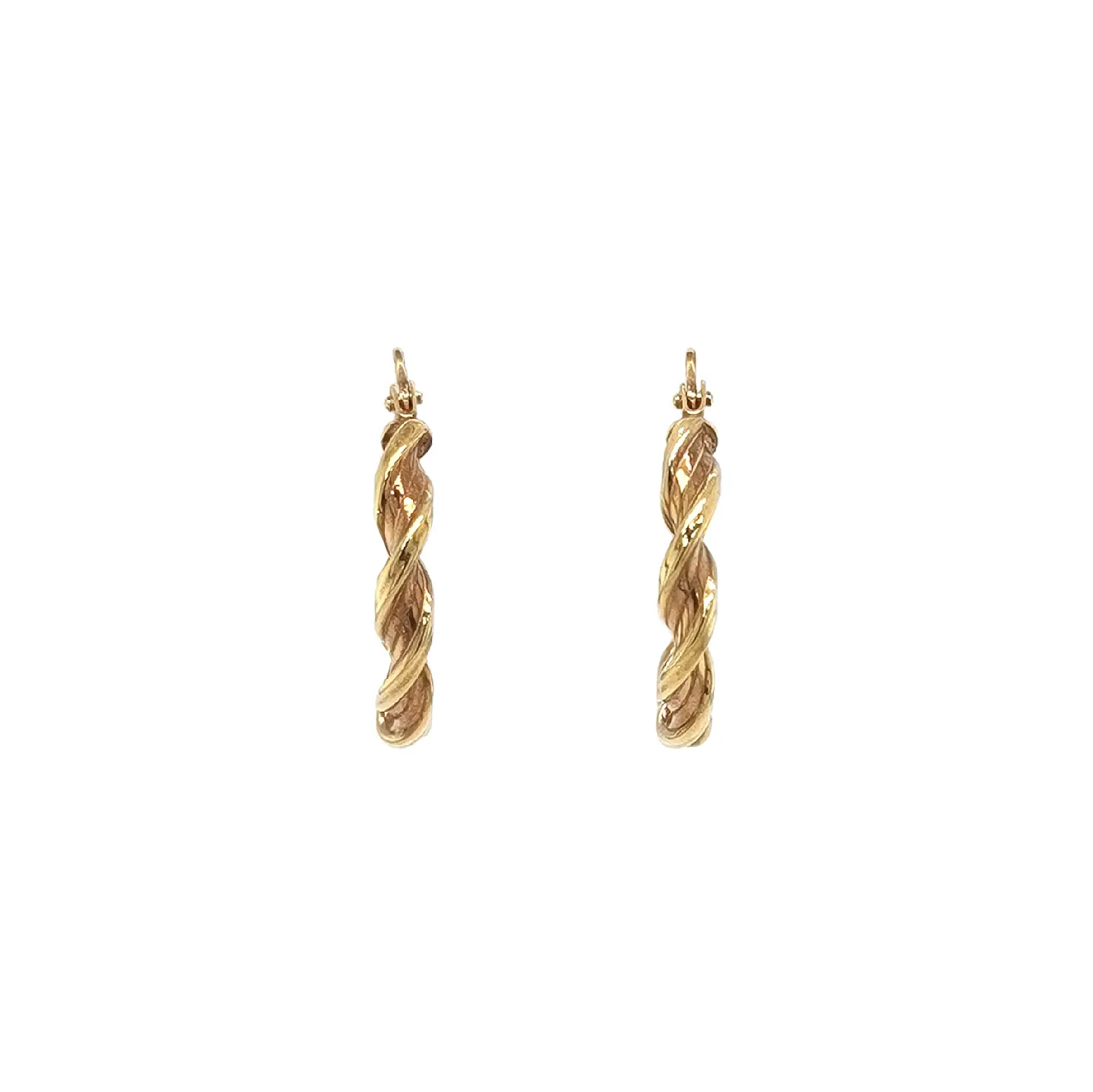 These gold twisted hoop earrings combine a classic silhouette with an elegant, textured design. The unique twisted pattern adds depth and a subtle sparkle that catches the light beautifully with every movement. Crafted from yellow gold, they offer a warm, timeless look that pairs effortlessly with other jewelry.