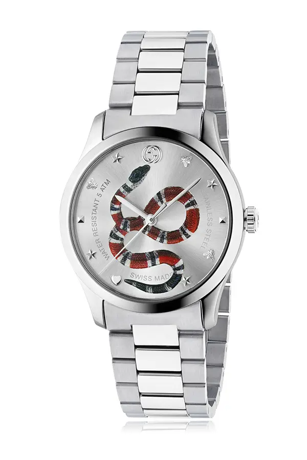Care-free accuracy is provided by a quartz movement. For daily confidence there is water resistance 5 ATM / 50 m, suitable for routine contact with water. Gucci G-Timeless YA1264076 is an ideal choice for those seeking a stylish, versatile, and reliable watch in a pure steel aesthetic.