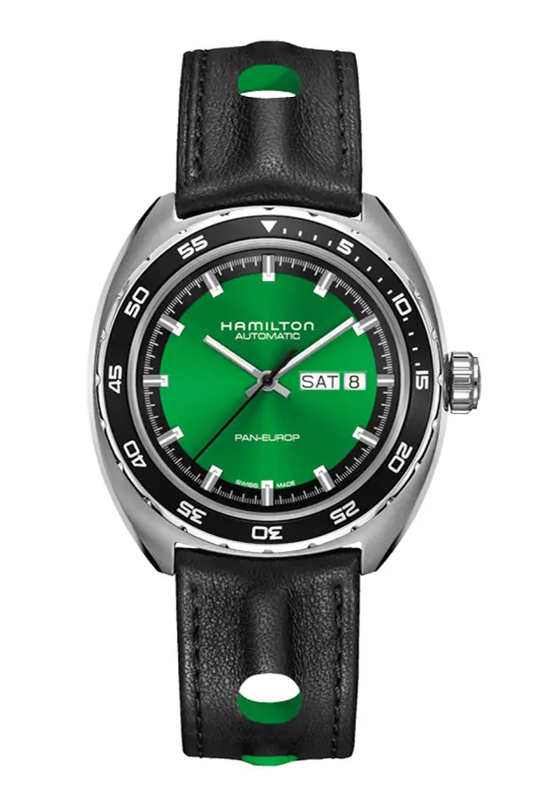 The Hamilton American Classic Pan Europ Day-Date Automatic H35415761 blends retro 1970s design with modern Swiss precision. This timepiece is an ideal choice for men who appreciate bold style, character, and technical quality.