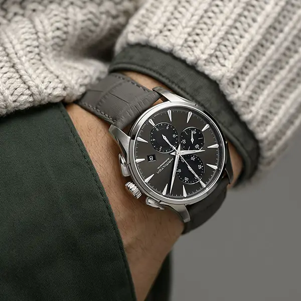 The collection offers a wide range of models - from simple three-hand variants, to chronographs, to models with complications such as power reserve, open heart or regulator. Jazzmaster watches are available in a variety of sizes and materials, with leather straps and steel bracelets, and always fitted with reliable Swiss mechanical movements.