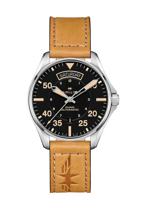 Khaki Aviation is Hamilton's collection that pays homage to the brand's aviation roots and its collaboration with pilots and the military. This line is inspired by 20th century navigation watches for pilots, but brings them to life in a modern, technically advanced design.