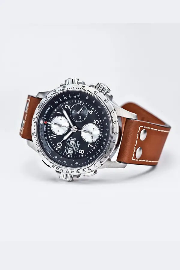 The Khaki Aviation models feature excellent legibility, rugged construction and precision movements. There are classic three-hand models as well as watches with complications such as GMT, chronograph, day and date, and altitude measurement. Cases are often made of steel or titanium, complete with distinctive crowns and dials inspired by on-board instruments.