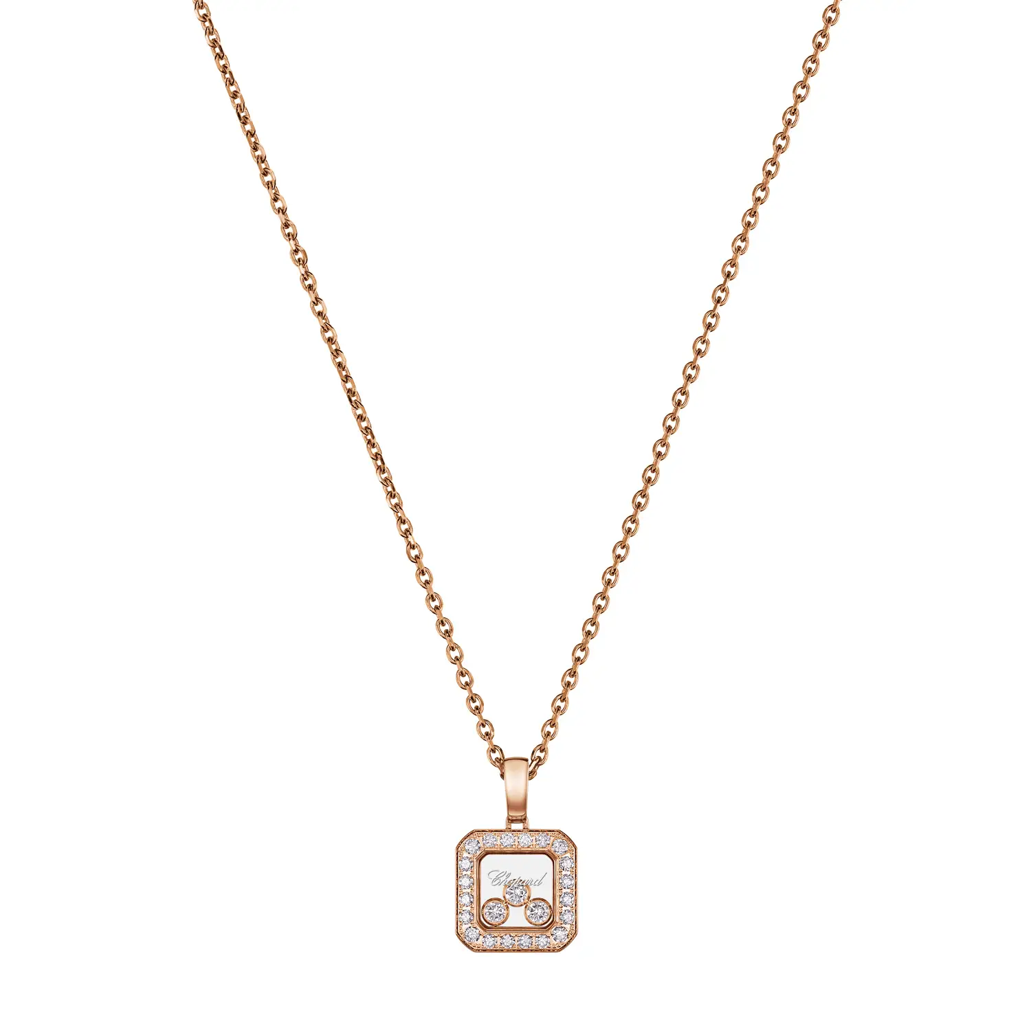 The Chopard Happy Diamonds Icons Necklace 79A115-5201 is an iconic jewel where brilliance and playfulness form perfect harmony. Crafted from 18 kt rose gold (750/1000) with a luxurious polished finish, it combines delicacy with nobility. The flexible 42 cm chain ensures a perfect fit and comfort, whether for everyday wear or festive occasions.