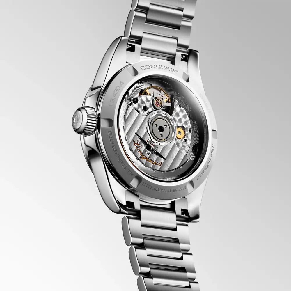 At its heart is the automatic calibre L888 with a silicon balance spring and a 72-hour power reserve, guaranteeing precision and reliability. The watch is completed with a stainless steel bracelet with a triple safety folding clasp, combining comfort and security. This model perfectly represents the Conquest spirit – elegance, performance, and Swiss tradition.