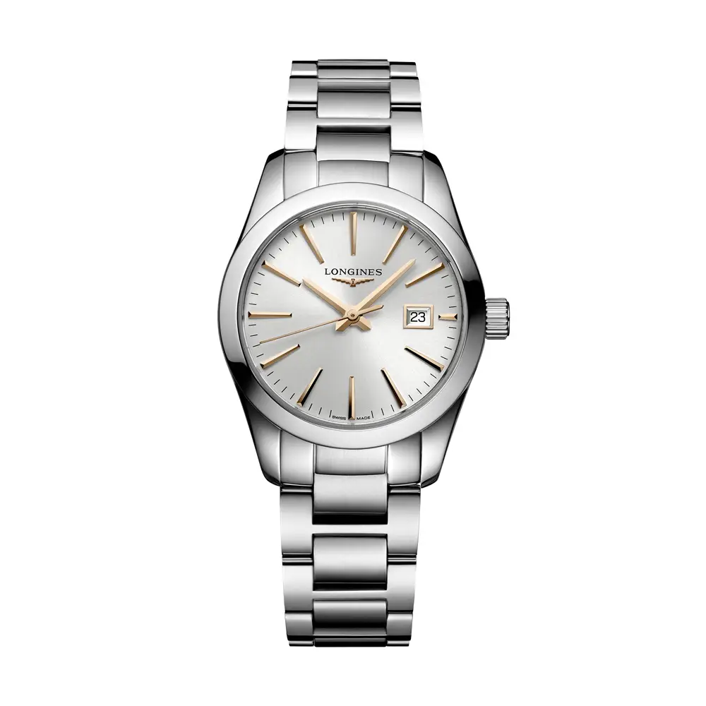 The stainless steel bracelet, mixing polished and brushed finishes, is fitted with a triple safety folding clasp, delivering comfort and security. The Conquest Classic L2.286.4.72.6 is the perfect choice for women seeking a classic, reliable, and elegant watch for everyday wear.