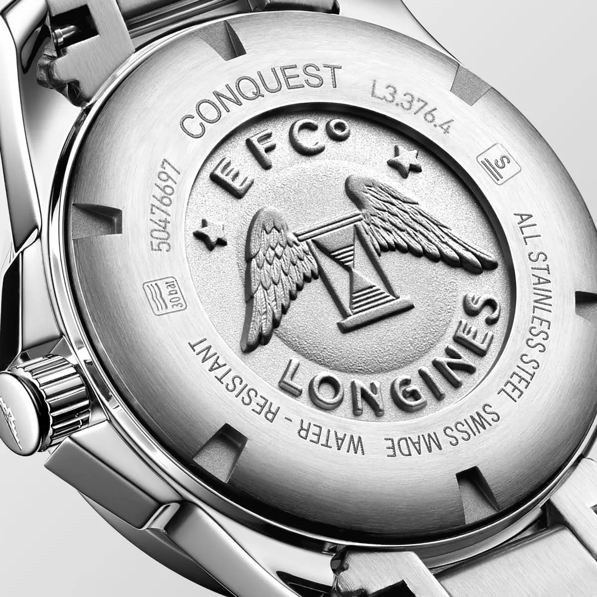 Inside beats the quartz calibre L152, guaranteeing precision and reliable performance. Completing the piece is a stainless steel bracelet with a triple safety folding clasp, providing comfort and security. This model perfectly represents the DNA of the Conquest collection – elegance, performance, and Swiss tradition.