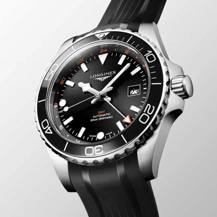 The Longines HydroConquest GMT L3.890.4.56.9 is a technically advanced sports watch that combines professional diving features with the practical dual time (GMT) function. It’s the ideal model for travelers and adventurers seeking maximum reliability, durability, and Swiss precision in an elegant form.