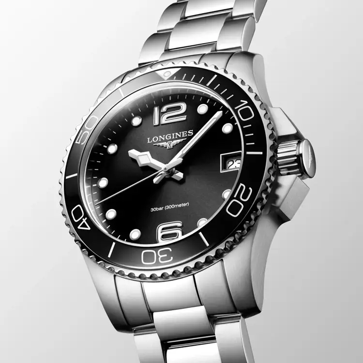 Modely HydroConquest se vyznačují robustním pouzdrem z ušlechtilé oceli, keramiky či titanu, vodotěsností až do 300 metrů a jednosměrně otočnou lunetou pro bezpečné měření času pod vodou. Ciferníky v odstínech modré, černé, šedé či zelené doplňují luminiscenční ručky a indexy, které zajišťují perfektní čitelnost i v hlubinách oceánu.