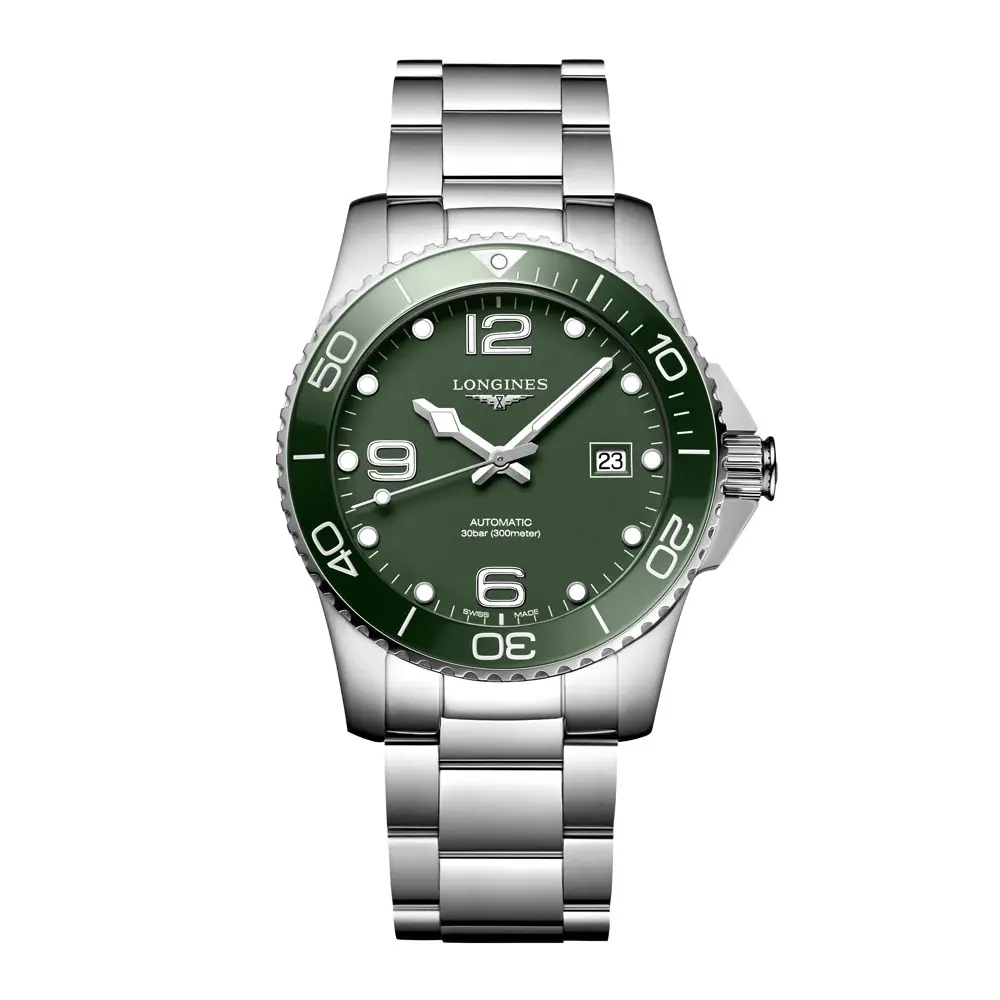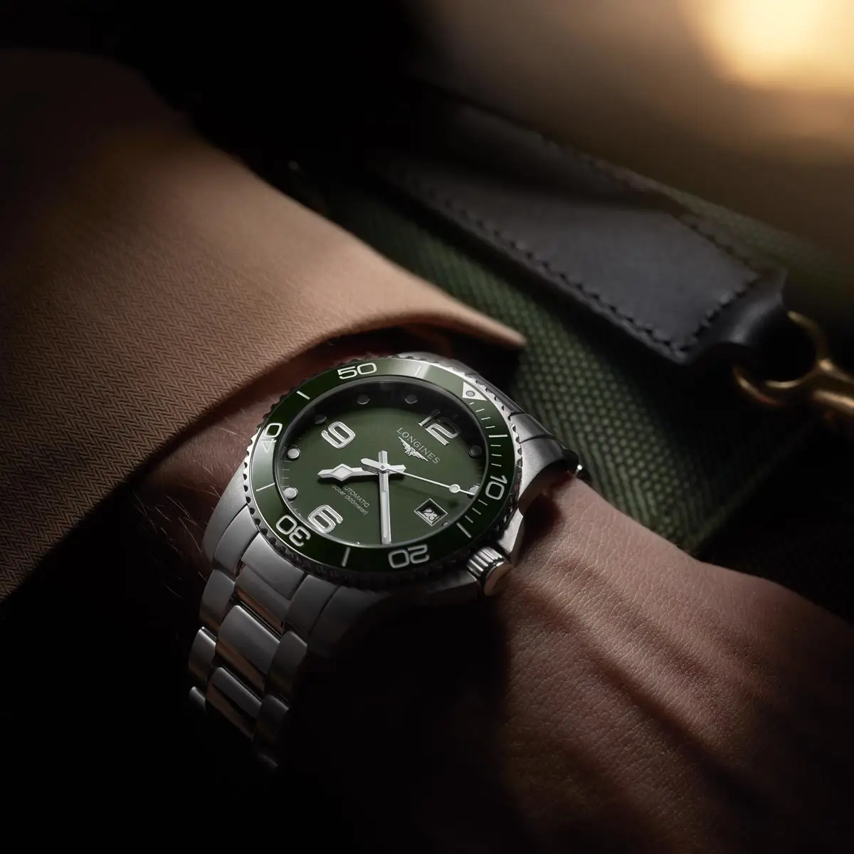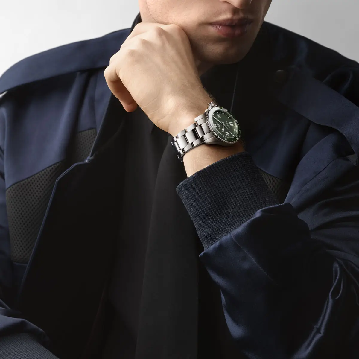 This green version of the HydroConquest is perfect for men who seek a powerful yet stylish timepiece that combines iconic sport design with Swiss precision technology.
