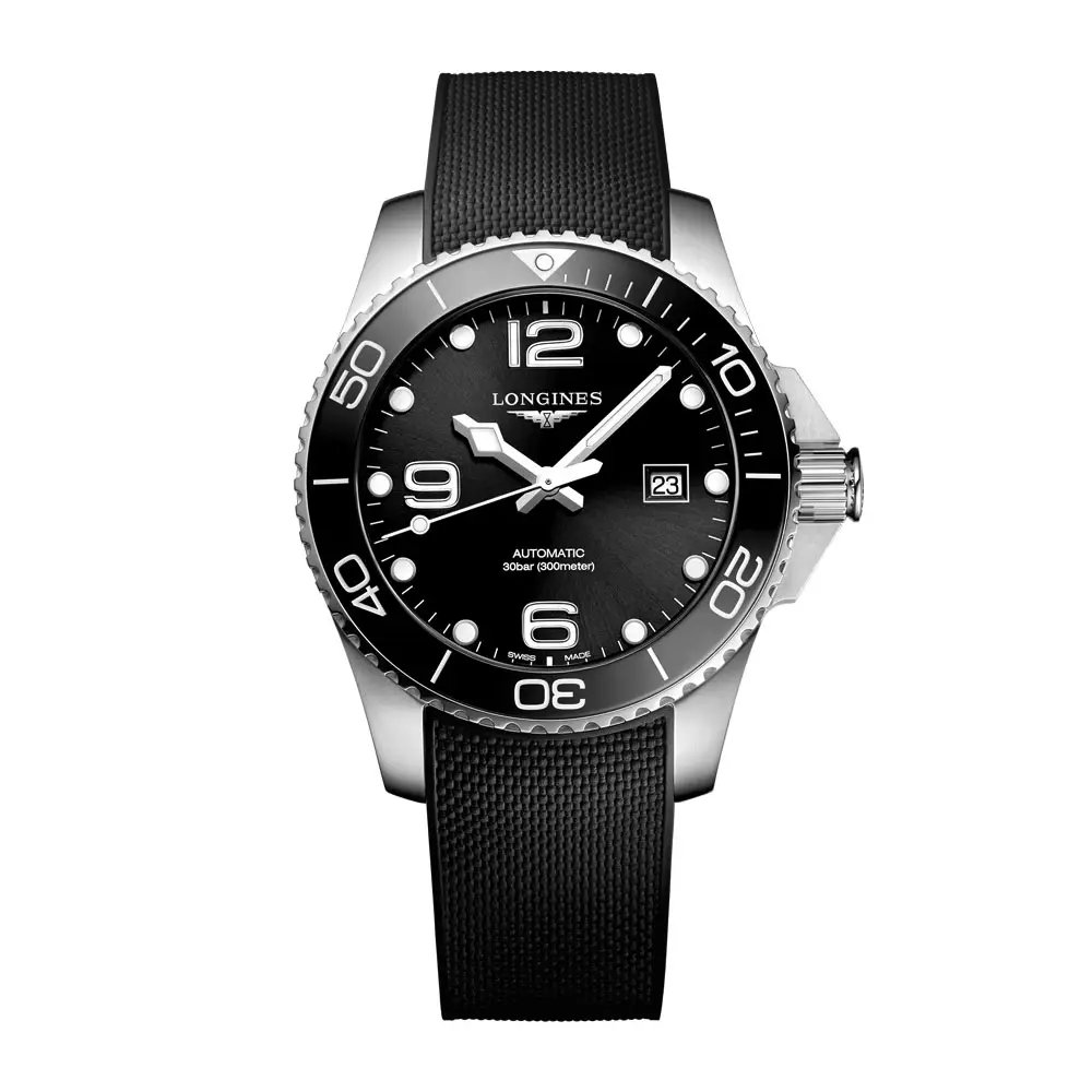 At its heart ticks the automatic calibre L888 with a 72-hour power reserve, ensuring precision and reliability. The watch is completed with a black rubber strap with a double safety folding clasp, offering comfort and security. This model embodies the HydroConquest DNA – performance, durability, and Swiss watchmaking tradition.