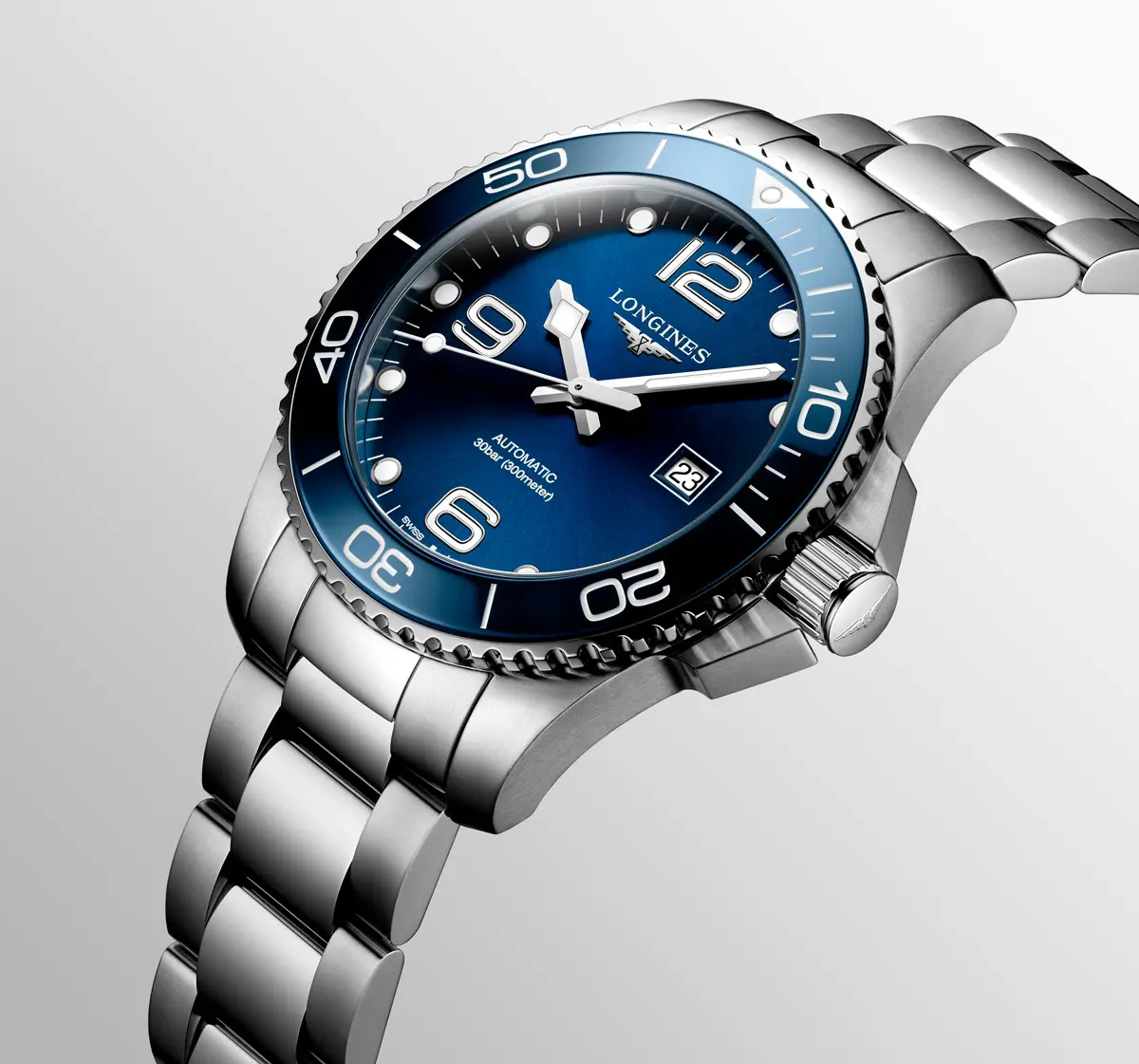 At its heart beats the automatic calibre L888 with a 72-hour power reserve, offering precision and reliability. The watch is completed with a stainless steel bracelet with a double safety folding clasp, ensuring both comfort and security. This model exemplifies the HydroConquest DNA – performance, resilience, and Swiss watchmaking tradition.