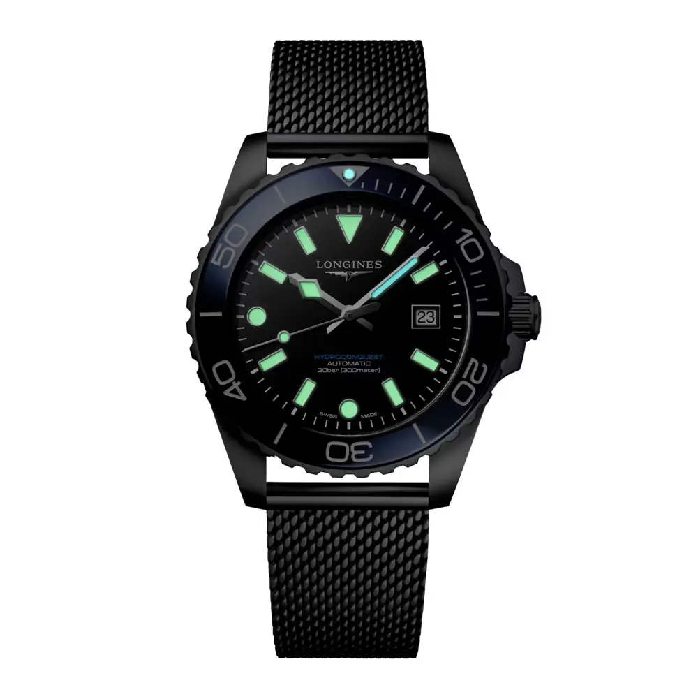 The HydroConquest models feature a robust stainless steel, ceramic or titanium case, water resistance up to 300 metres and a unidirectional rotating lunette for safe underwater timekeeping. The dials in shades of blue, black, grey or green are complemented by luminescent hands and indices that ensure perfect legibility even in the depths of the ocean.